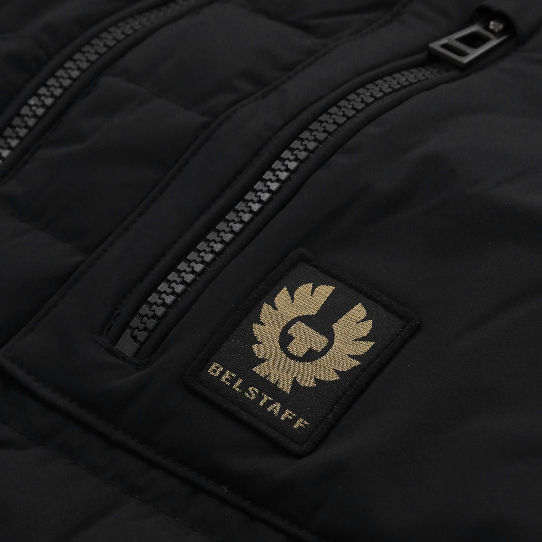Belstaff Chassis Gilet in Black. The Chassis gilet in black is a lightweight, high-performance puffer designed for warmth without bulk. Crafted from advanced four-way stretch fabric with a water-repellent finish, it delivers unrestricted movement and protection from the elements. Filled with premium 750-fill power down, this technical gilet offers an exceptional warmth-to-weight ratio, providing high levels of insulation while remaining highly compressible and easy to layer. Designed for versatile wear, the Chassis gilet works effortlessly over knitwear or mid-layers and under outerwear, making it ideal for everyday use, travel and cold-weather layering. A modern essential for those seeking lightweight down insulation, stretch comfort and refined performance in one streamlined design.