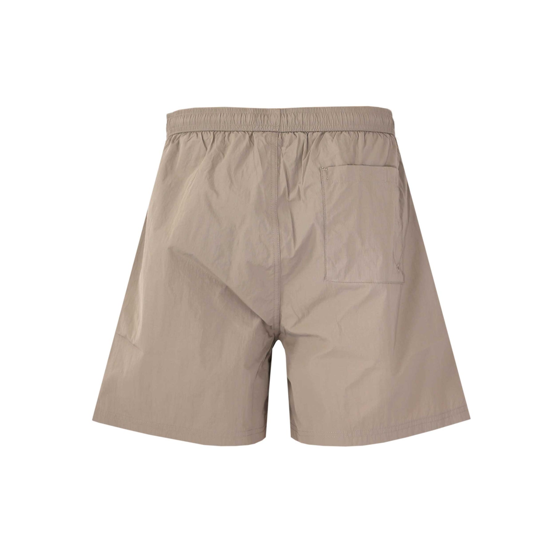 Belstaff Clipper Swim Short in Dark Sand. Swim short by Belstaff. Elasticated waistband with drawstring feature. Branded metal tips to the drawstrings. With two slash front pockets and a zip fastening pocket to the seat. Small Belstaff heritage logo badge to the leg.