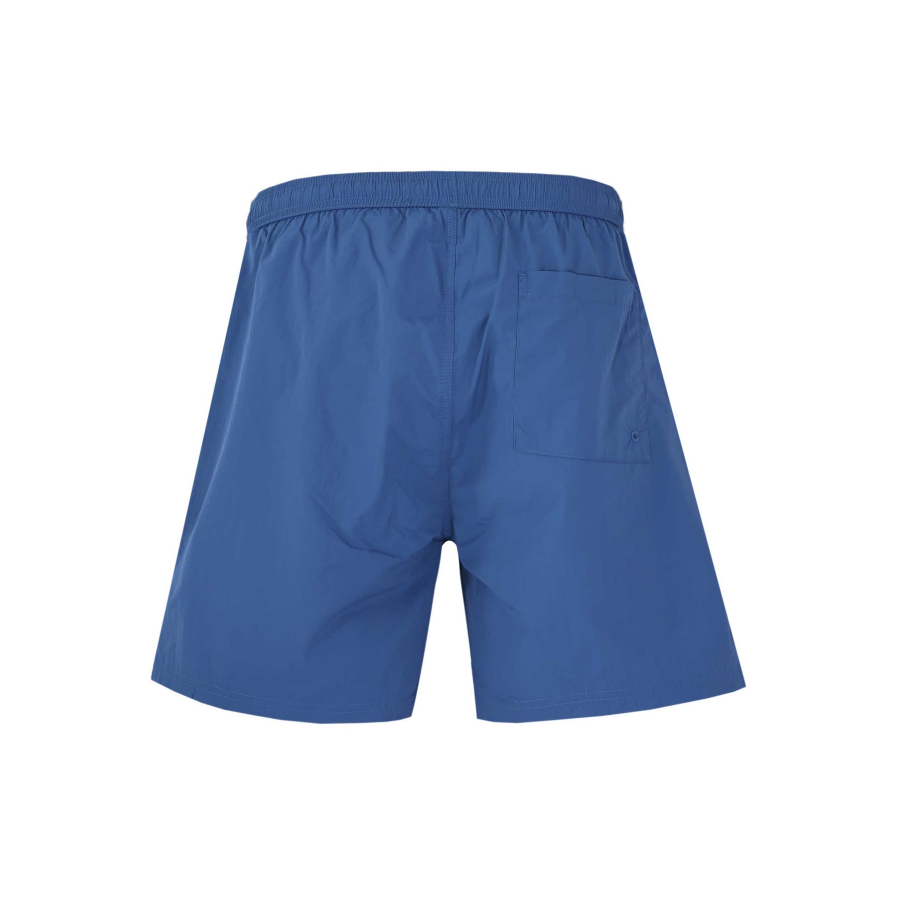 Belstaff Clipper Swim Short in Marine Blue. Swim short by Belstaff. Elasticated waistband with drawstring feature. Branded metal tips to the drawstrings. With two slash front pockets and a zip fastening pocket to the seat. Small Belstaff heritage logo badge to the leg.