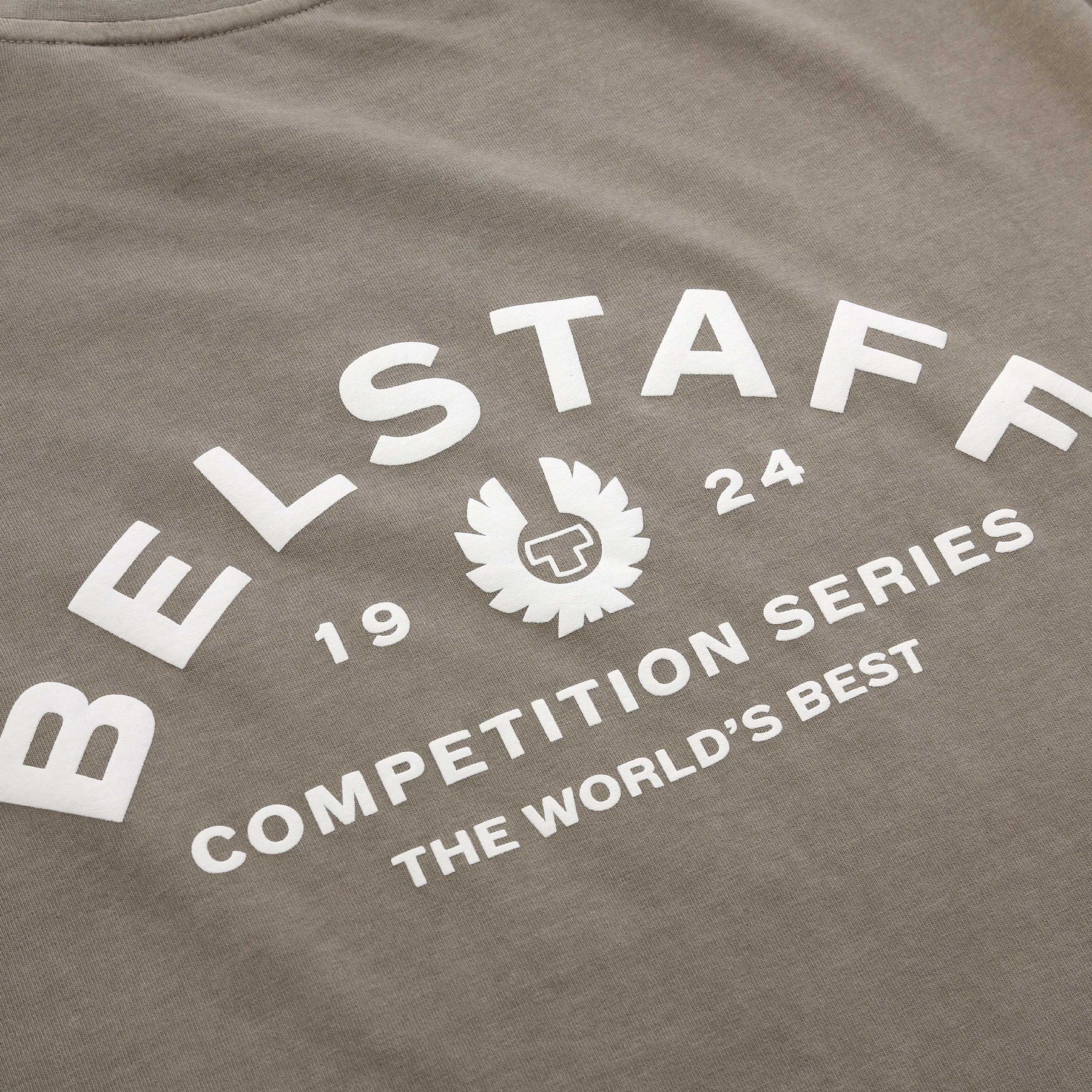 Belstaff Competition T-Shirt in Dark Sand. Drawing inspiration from Belstaff’s motorsport heritage, the Competition Series showcases the original 1990s Belstaff logo taken from customised archival competition race suits. The Competition T-shirt delivers a modern take on this iconic racing aesthetic.