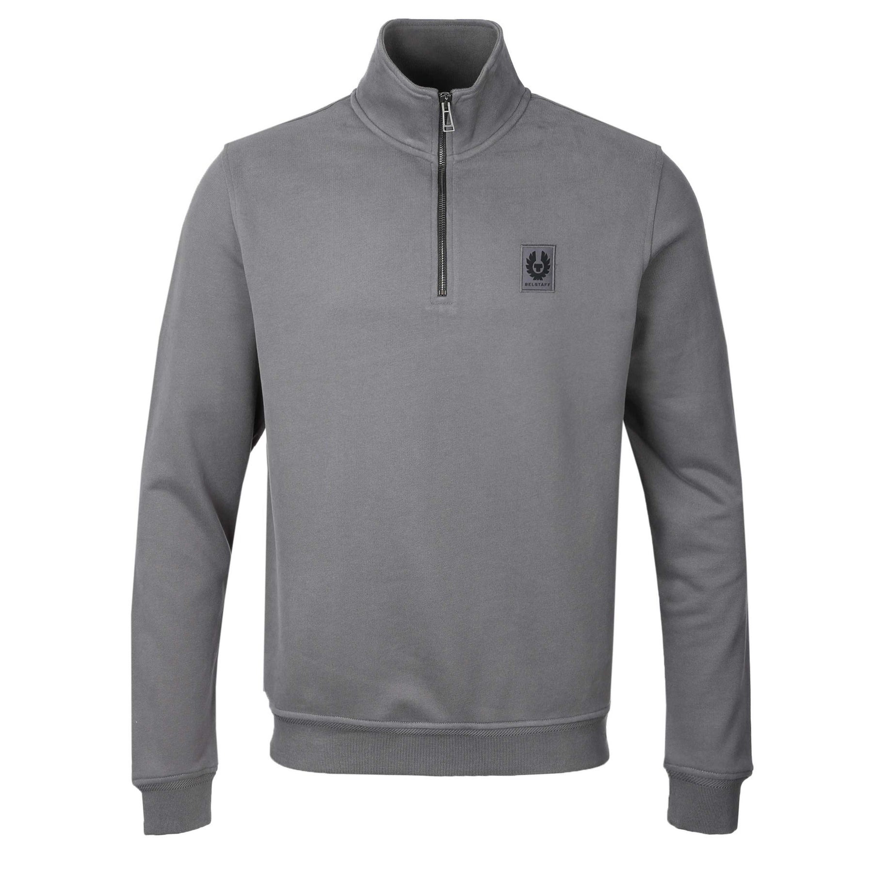 Belstaff Quarter Zip Sweat Top in Tornado Grey. A quarter zip sweat top featuring a funnel neck collar which can be worn flat or zipped up. Ribbed cuffs and waistband. Finished with the signature Belstaff logo badge on the chest. Team up with sweat pants or jeans.