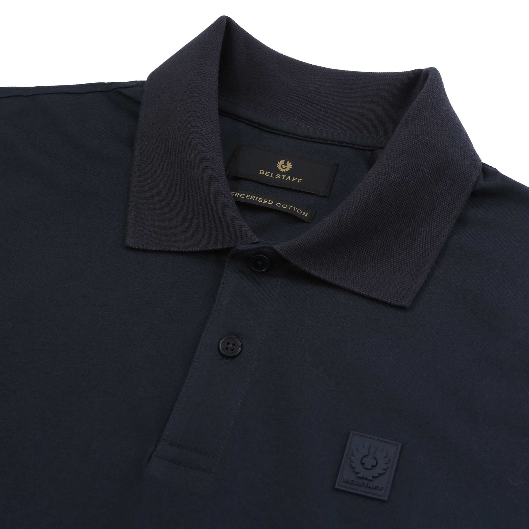 Belstaff Steel Polo Shirt in Dark Ink. A classic polo shirt by Belstaff featuring a 2 button fastening placket with a tonal silicone Belstaff logo on the chest. Constructed from a soft mercerised cotton Perfect for everyday wear.