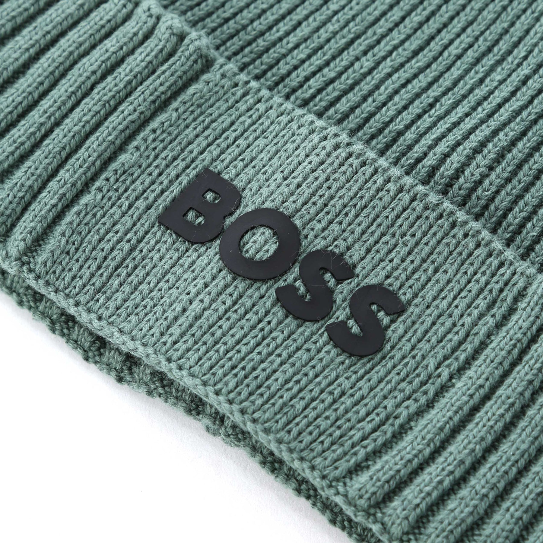 BOSS Asic Beanie X in Open Green. This BOSS beanie hat arrives in a wool blend with a classic ribbed design. The turnover features a rubber BOSS logo.