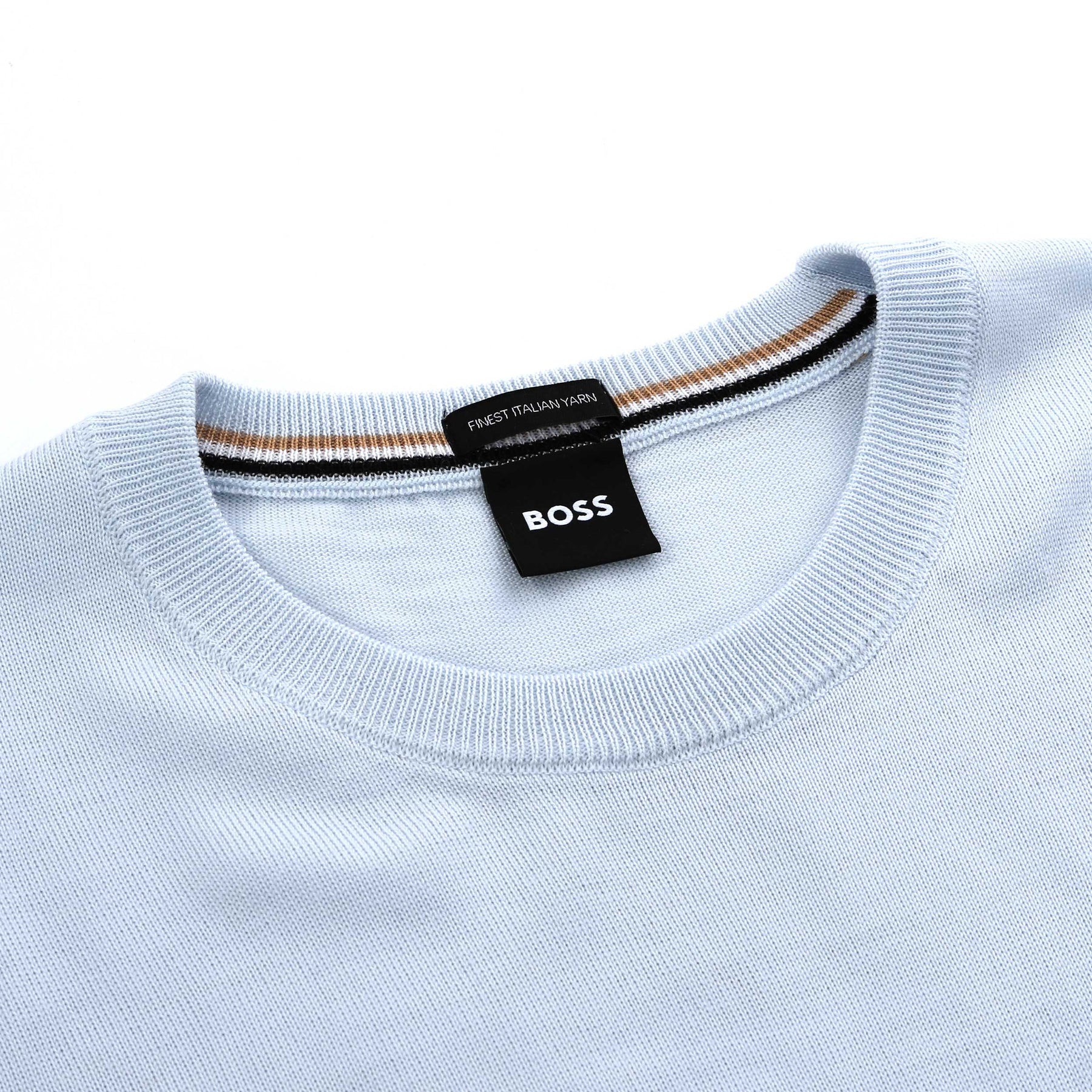 Embrace the versatility of the BOSS Botto L Knitwear in Duck Egg Blue. Pair it with tailored trousers for a refined outfit or denim for a more laid-back style. This knitwear is a must-have staple that elevates your everyday ensemble.