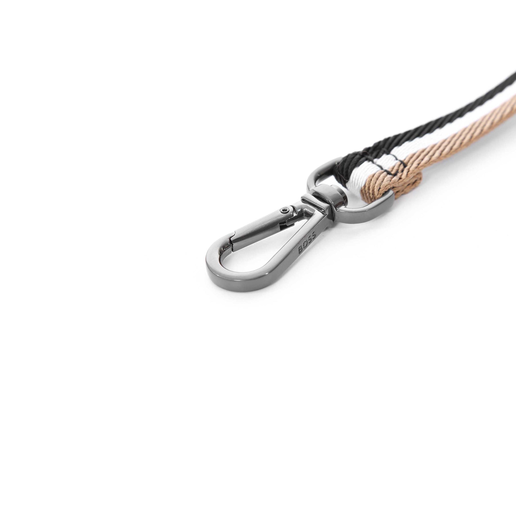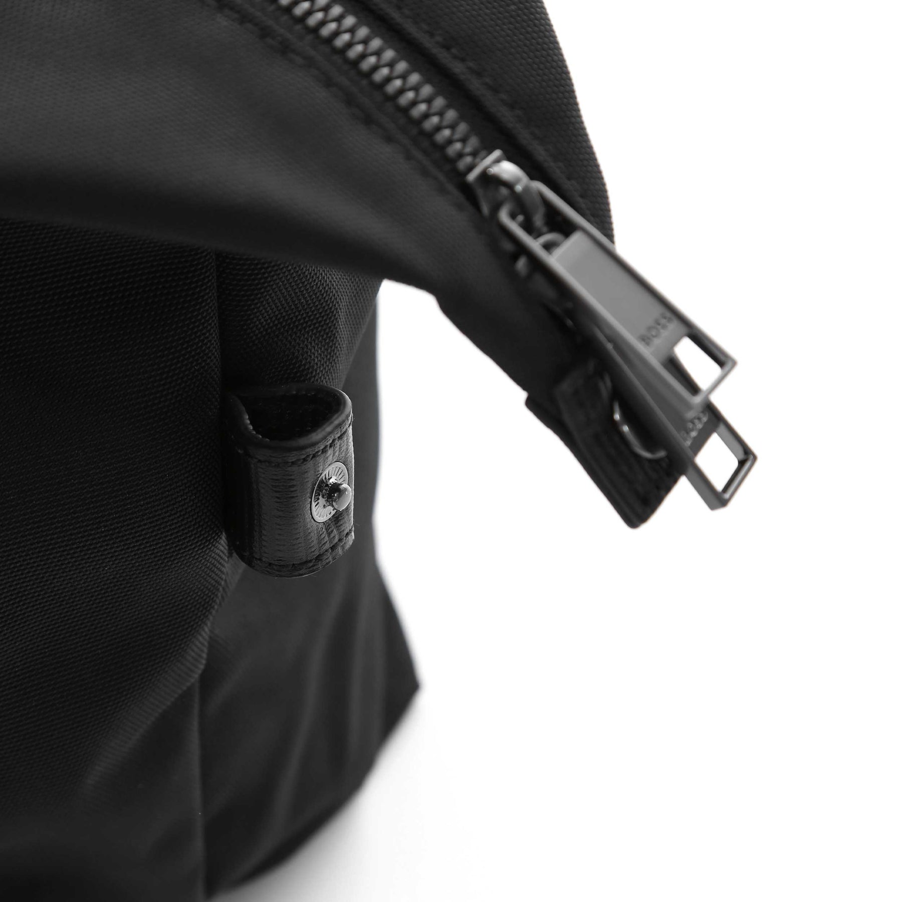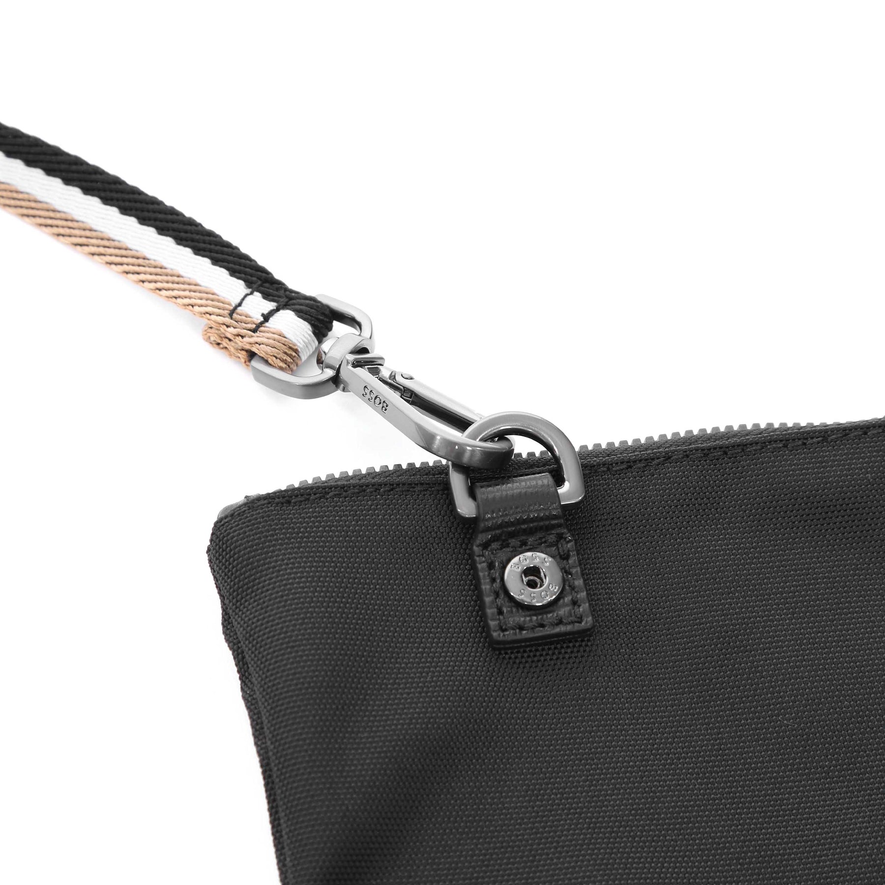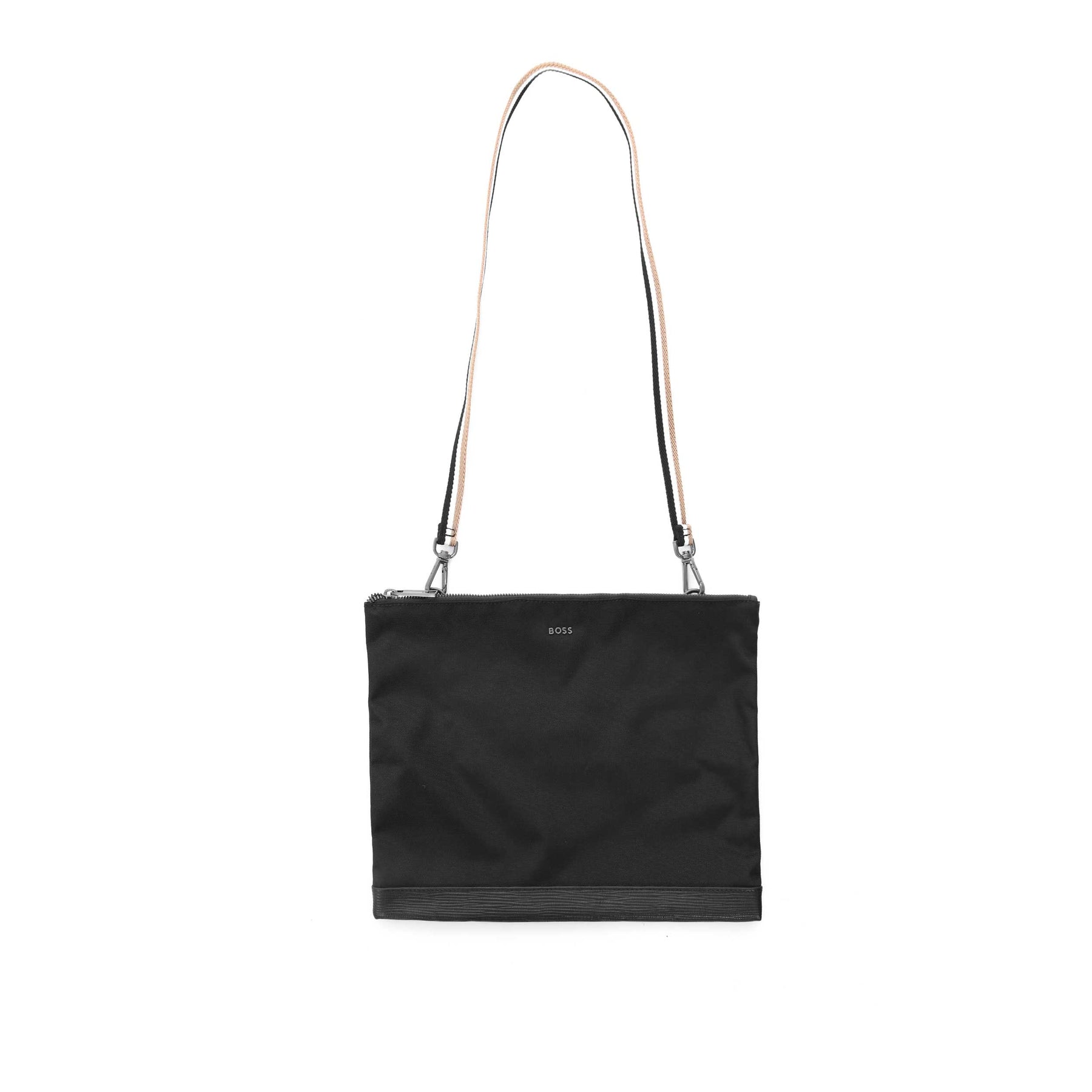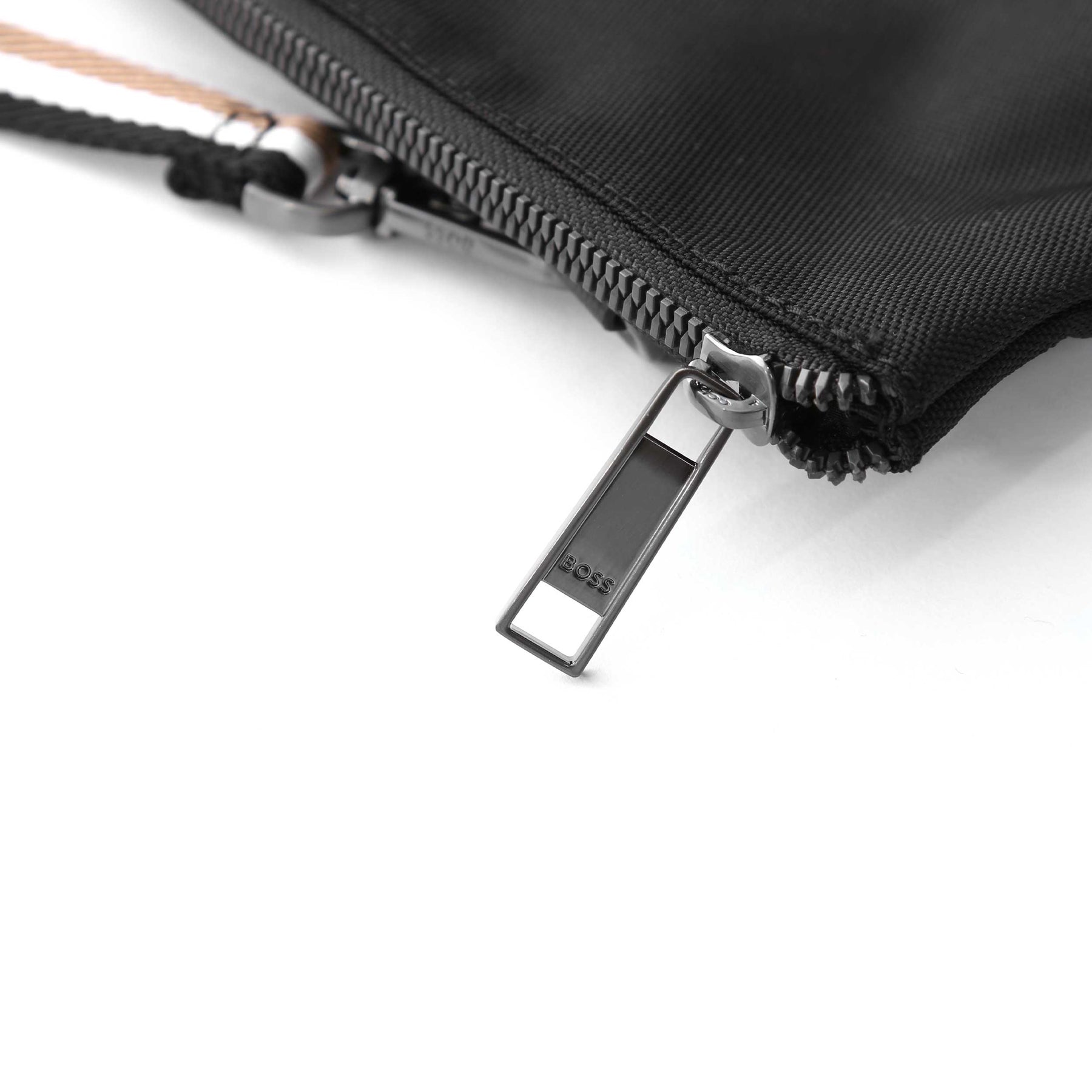 BOSS First Class S Hold Bag in Black. A versatile Hugo Boss holdall. This nylon holdall is a spacious accessory with a two way zip. Removable pouch for added storage. Tri-colour BOSS logo to the front. Leather details throughout the bag. Finished off with a metal BOSS logo badge to the front. The perfect holdall for weekends away or for the gym.