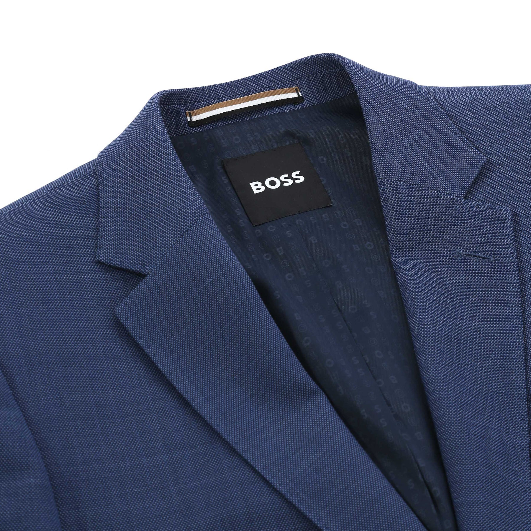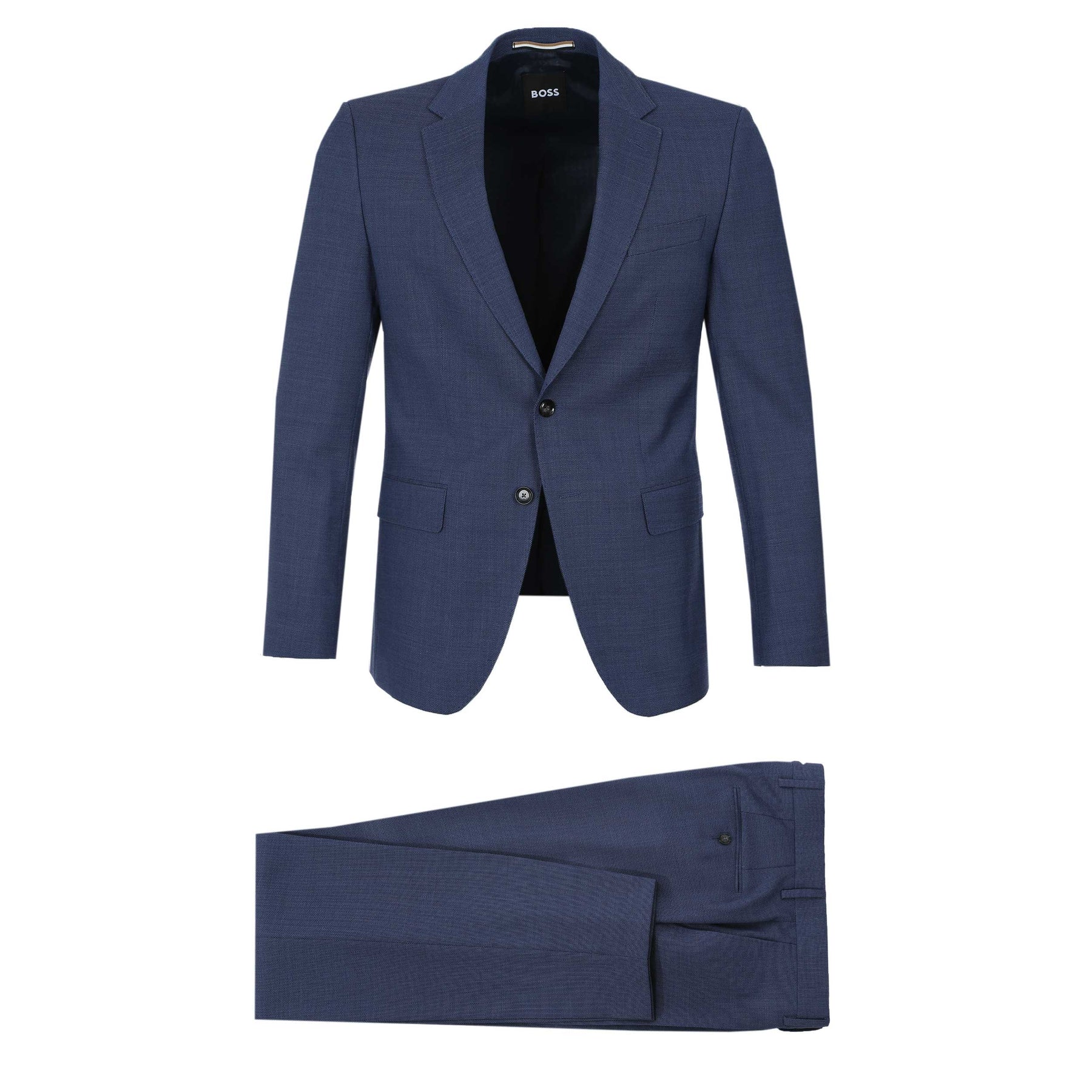 Upgrade your tailoring rotation with this BOSS H Huge 2Pcs 253 Suit in Open Blue, expertly crafted for modern formalwear. Cut to a streamlined slim fit, it’s constructed from performance-stretch virgin wool, delivering sharp structure with added flexibility for all-day comfort. Designed to move with you without compromising on polish, the fabric offers a rich, refined finish while maintaining breathability and ease. Structured shoulders and classic notch lapels sharpen the silhouette, reinforcing the suit’s modern, confident profile. Ideal for business, events, or elevated occasions, this BOSS suit delivers precision tailoring, premium materials, and effortless wearability—exactly what a modern wardrobe demands.