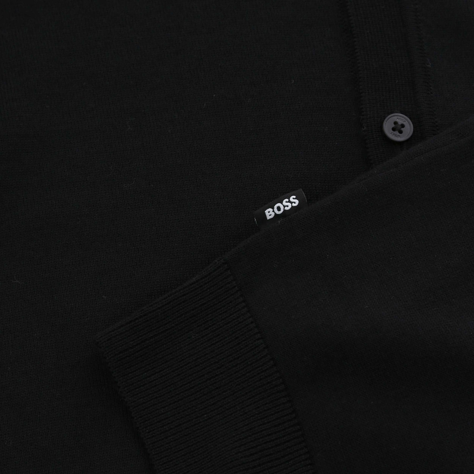 BOSS Helbert Knitwear in Black. The BOSS Helbert Knitwear delivers a clean, modern update to a classic knitwear staple. Crafted from a soft, premium fabric blend, it features a full button-up front that layers effortlessly over T-shirts, shirts or lightweight knits. Cut in a regular fit, it offers easy comfort with a refined, understated look. Subtle BOSS branding keeps the finish sophisticated and minimal. Perfect for smart-casual outfits and ideal for transitional seasons, this is a timeless cardigan built for everyday wear with a polished edge.