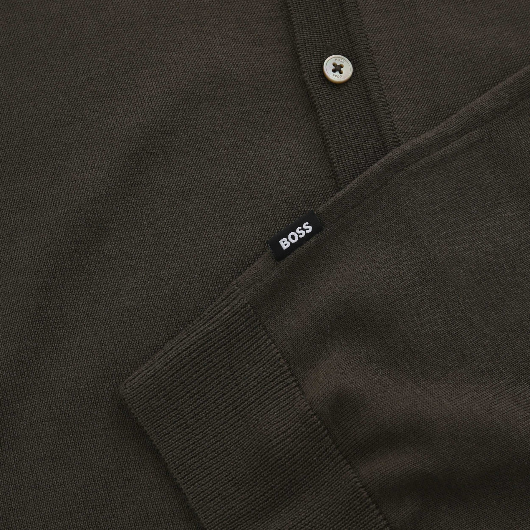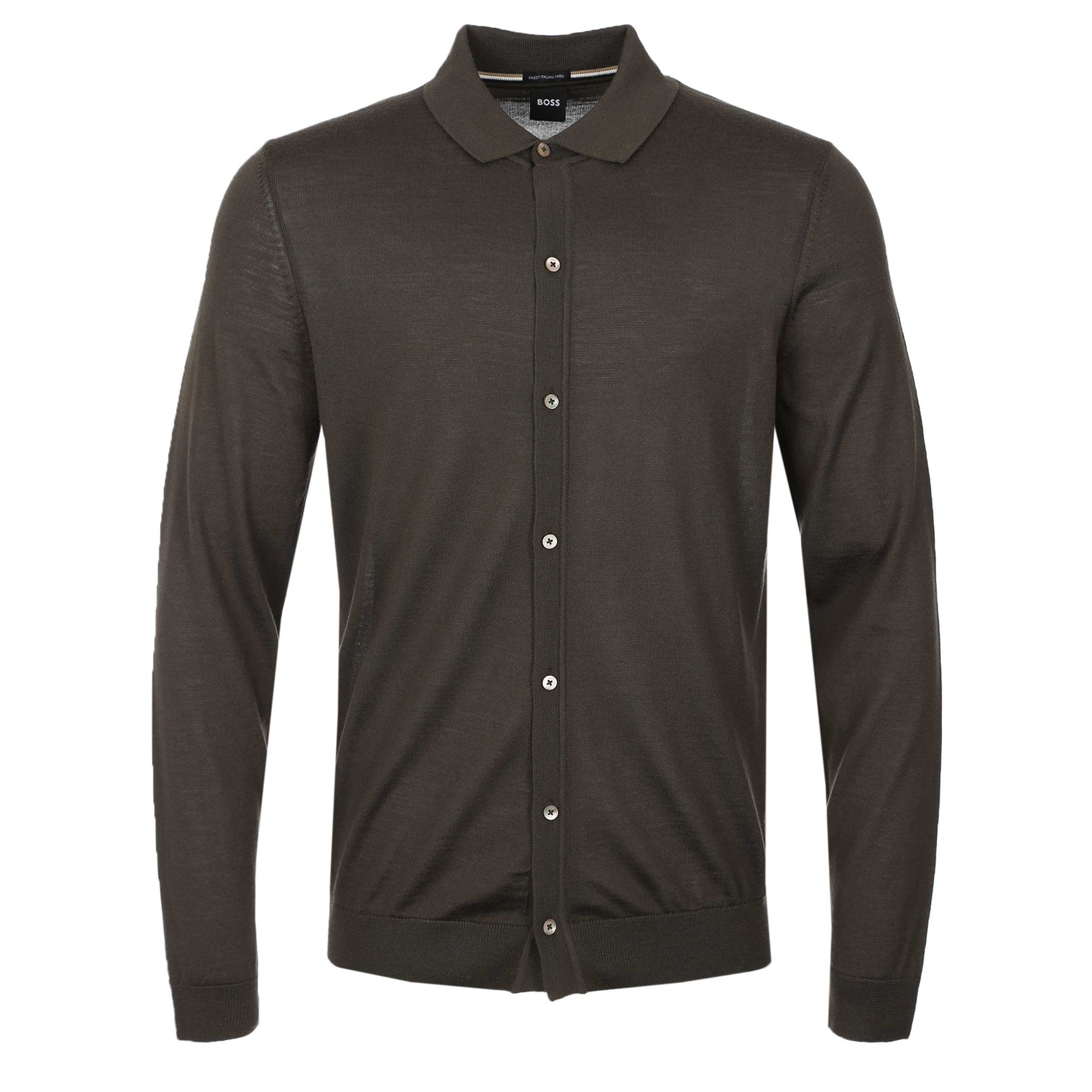 BOSS Helbert Knitwear in Khaki. The BOSS Helbert Knitwear delivers a clean, modern update to a classic knitwear staple. Crafted from a soft, premium fabric blend, it features a full button-up front that layers effortlessly over T-shirts, shirts or lightweight knits. Cut in a regular fit, it offers easy comfort with a refined, understated look. Subtle BOSS branding keeps the finish sophisticated and minimal. Perfect for smart-casual outfits and ideal for transitional seasons, this is a timeless cardigan built for everyday wear with a polished edge.