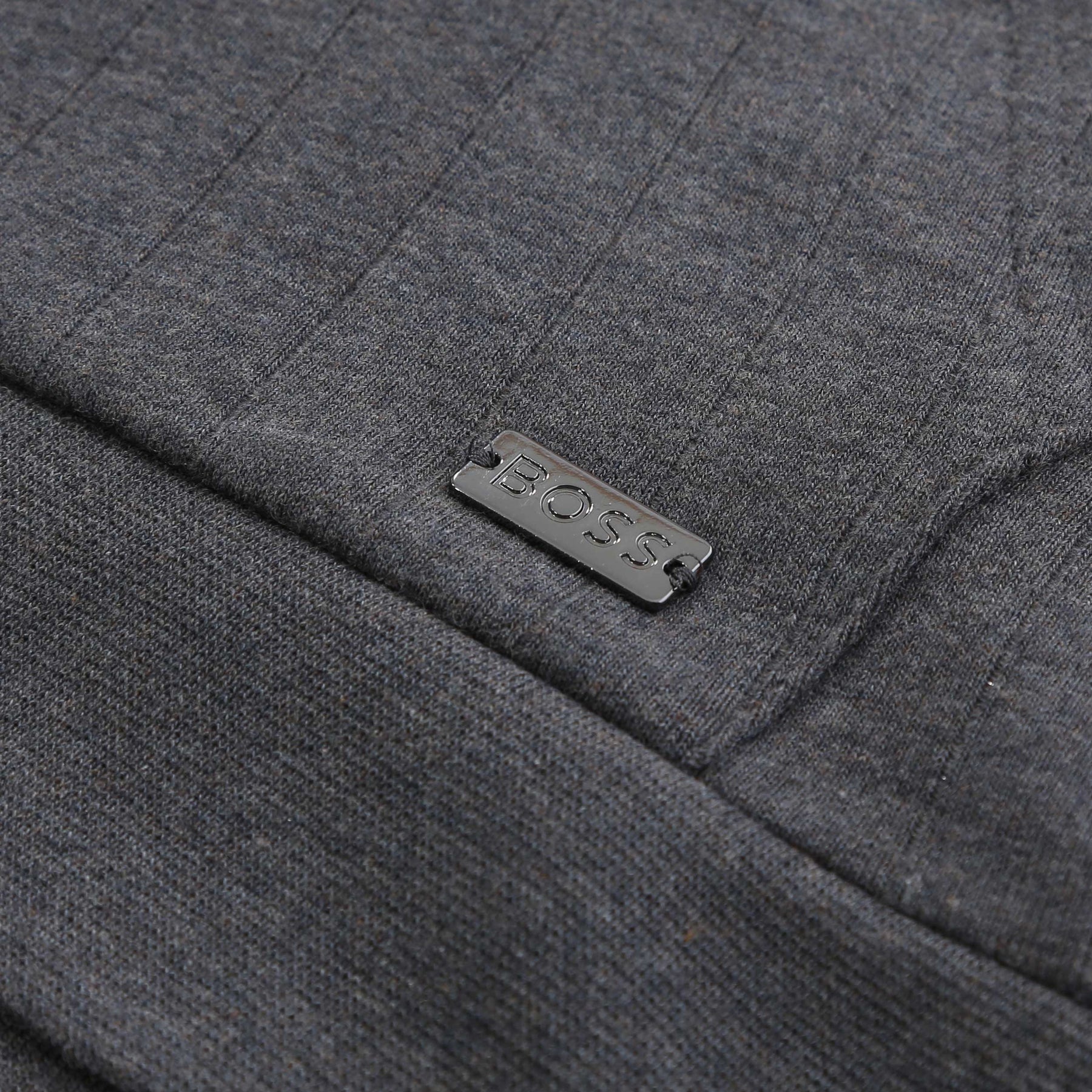 BOSS Heritage Jacket H Sweatshirt in Medium Grey. A heritage-inspired hoodie by BOSS. This zip-up style jacket has a drawstring hood with branded metal toggles. Full zip fastening front. Subtle pinstripe design throughout the sweatshirt. Metal Boss logo tab to the front. Finished with slip pockets.