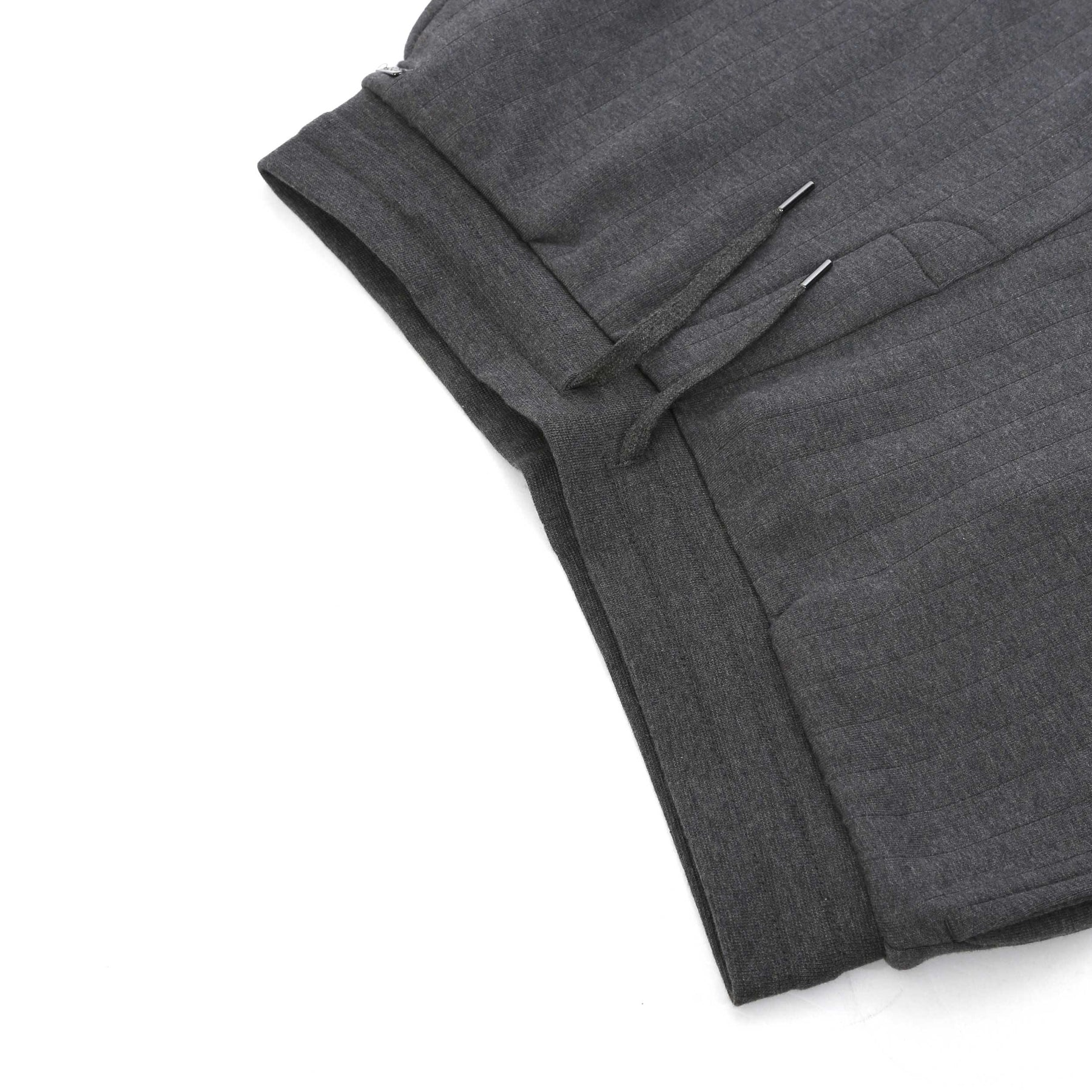 BOSS Heritage Pants in Medium Grey. Sweatpants by Hugo Boss. These regular fit sweat shorts feature an elasticated waistband with drawstring. Subtle pinstripe design to the sweatpant. Two side pockets and a metal BOSS logo to the leg.