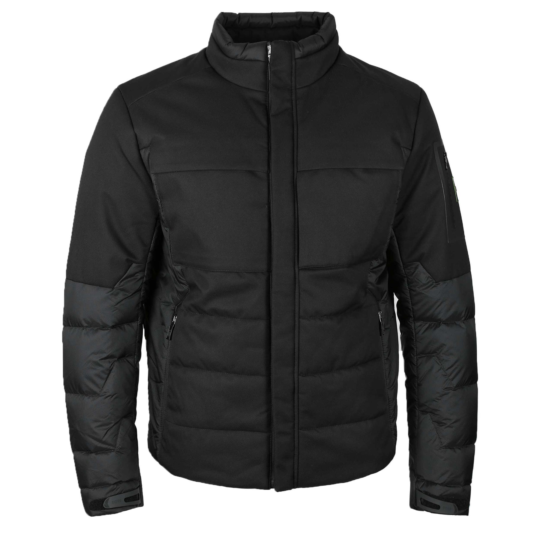 BOSS J Lisk Jacket in Black. BOSS Men's Regular-Fit Water-Repellent Jacket—a versatile and stylish outerwear piece that seamlessly blends various materials for a modern look.