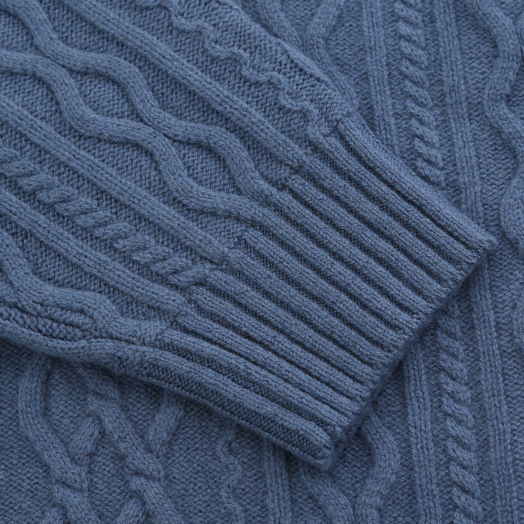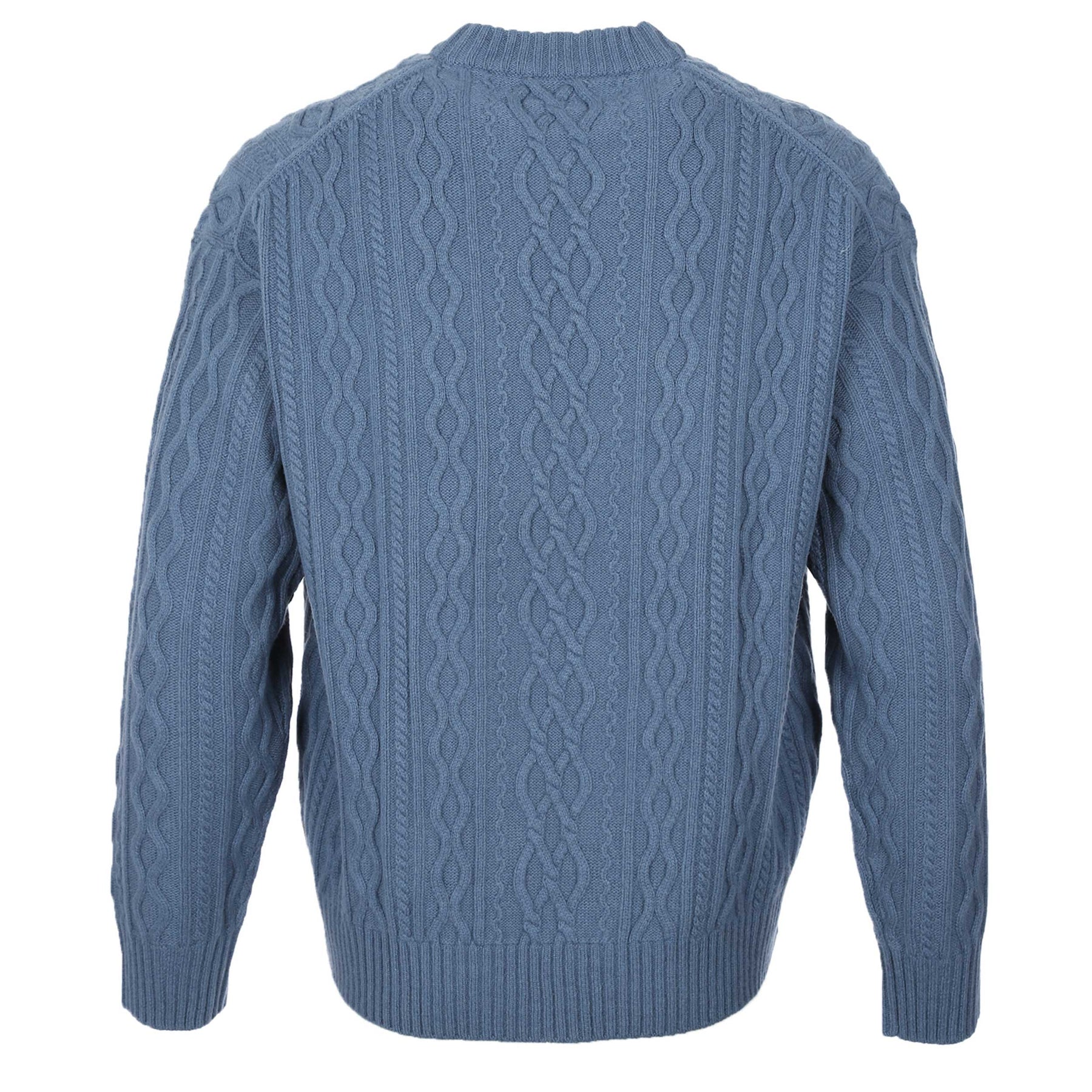 BOSS Kableto Knitwear in Open Blue. A classic piece of knitwear by BOSS. A modern take on a cold-weather classic, this BOSS cable-knit knitwear delivers effortless comfort with its relaxed fit and dropped shoulders. Crafted from ultra-soft, responsibly sourced wool, it offers warmth without weight and a premium feel you’ll reach for all season.