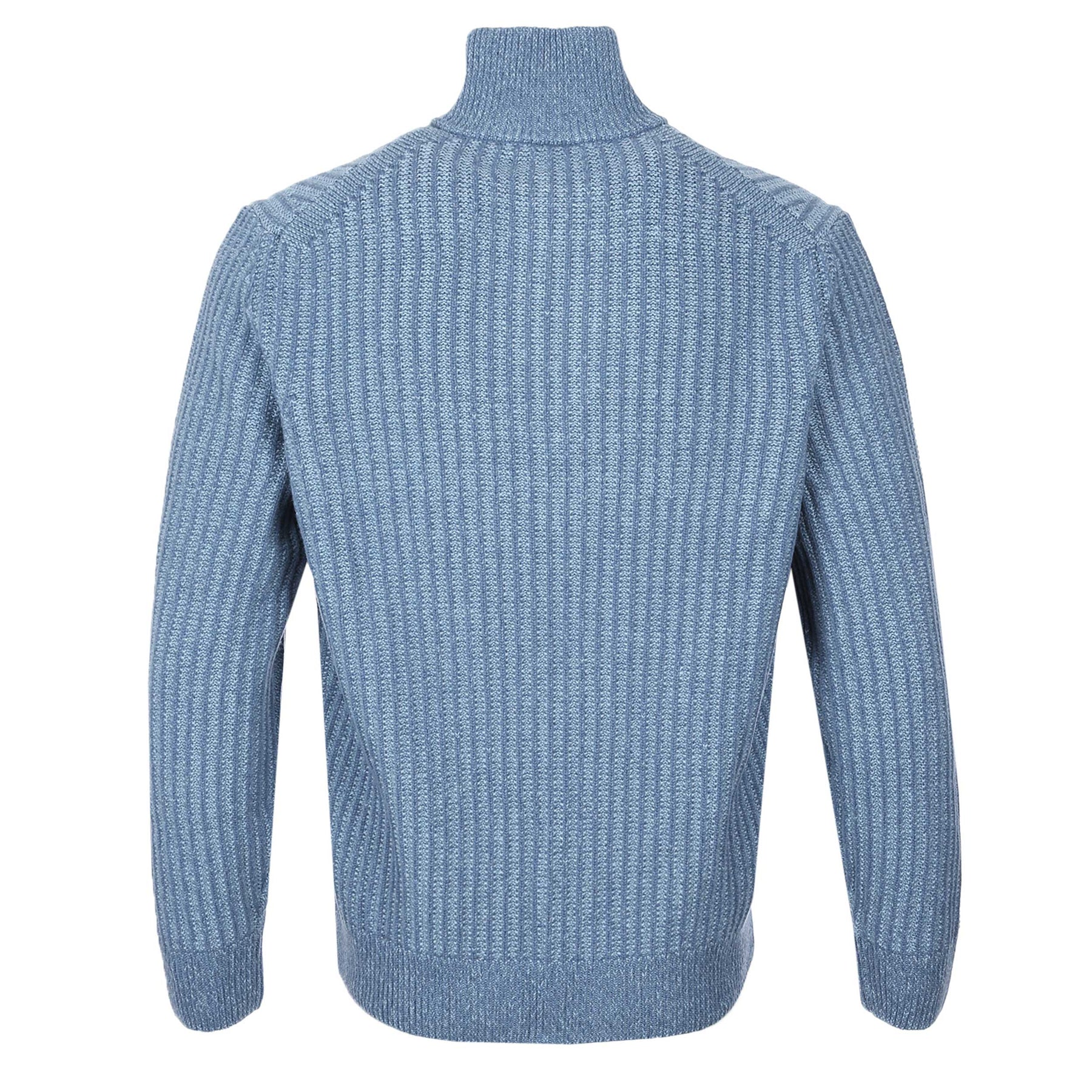 BOSS Kwinter Knitwear in Open Blue. A classic piece of knitwear by BOSS. A two-tone knitted quarter-zip with a structured ribbed stand collar, ribbed cuffs, and a stretch ribbed hem for a secure, comfortable fit. Finished with a subtle Boss branded pinch tag at the lower side seam, it’s a modern everyday layer with just enough edge.