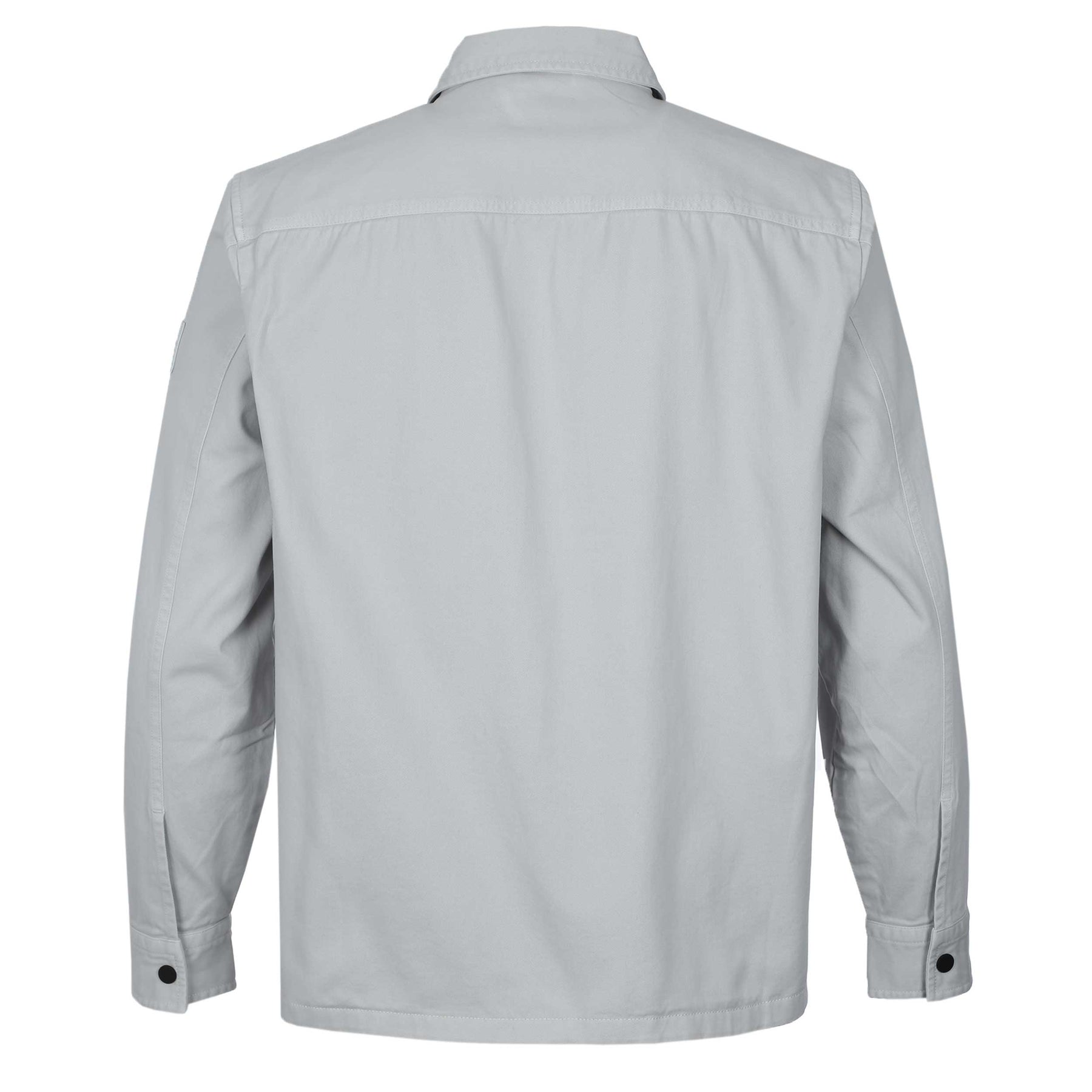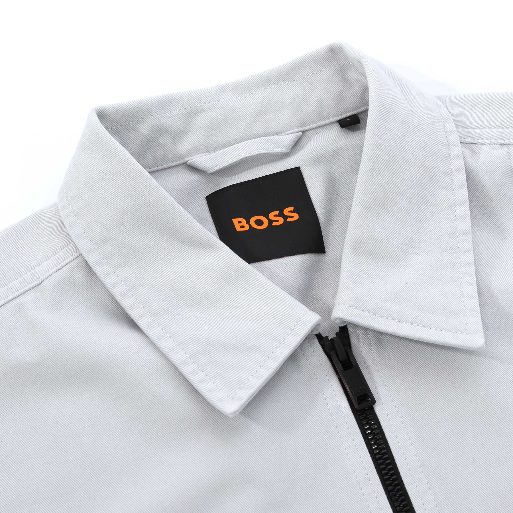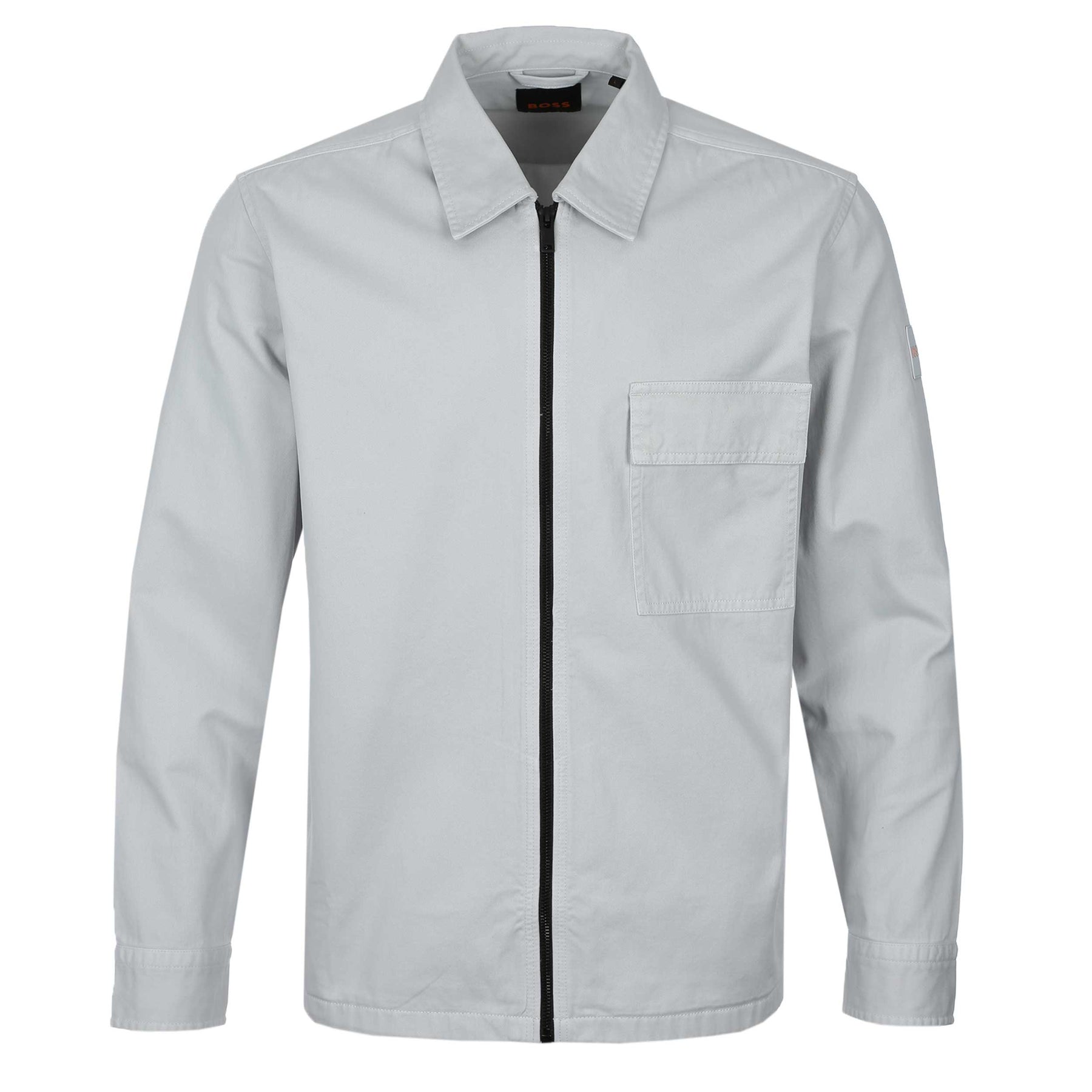 Upgrade your smart-casual layering with the BOSS Lorum Full Zip Overshirt in Light Pastel Grey. Designed as a modern hybrid between a jacket and a shirt, it delivers clean structure with everyday versatility. Cut with a standard shirt collar, this overshirt features a full-length black branded zip fastening that adds contrast and a contemporary edge. Long sleeves with press-stud cuffs allow for adjustable wear, while two side pockets and a press-stud flap chest pocket provide practical storage without disrupting the streamlined silhouette. Finished with a rubberised BOSS logo patch on the left upper sleeve, this piece balances understated branding with refined utility—ideal for transitional dressing.