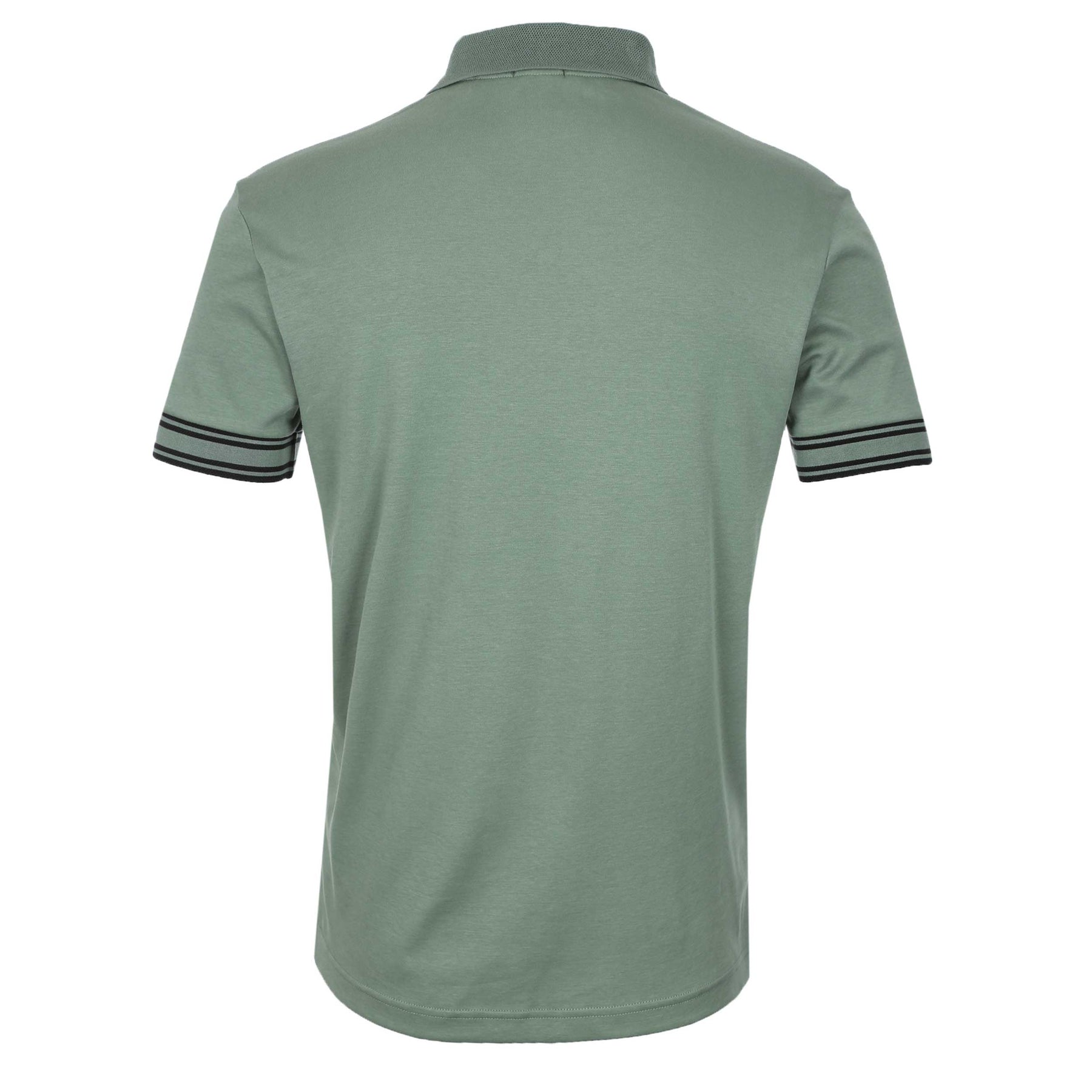 BOSS Polo Zone Polo Shirt in Open Green. A classic Hugo Boss polo shirt in a slim fit. A 2 button fastening placket. A BOSS polo shirt with flat knit collar and cuffs. Contrasting colour stripe detailing to the cuffs. Raised rubber logo to the left cuff.