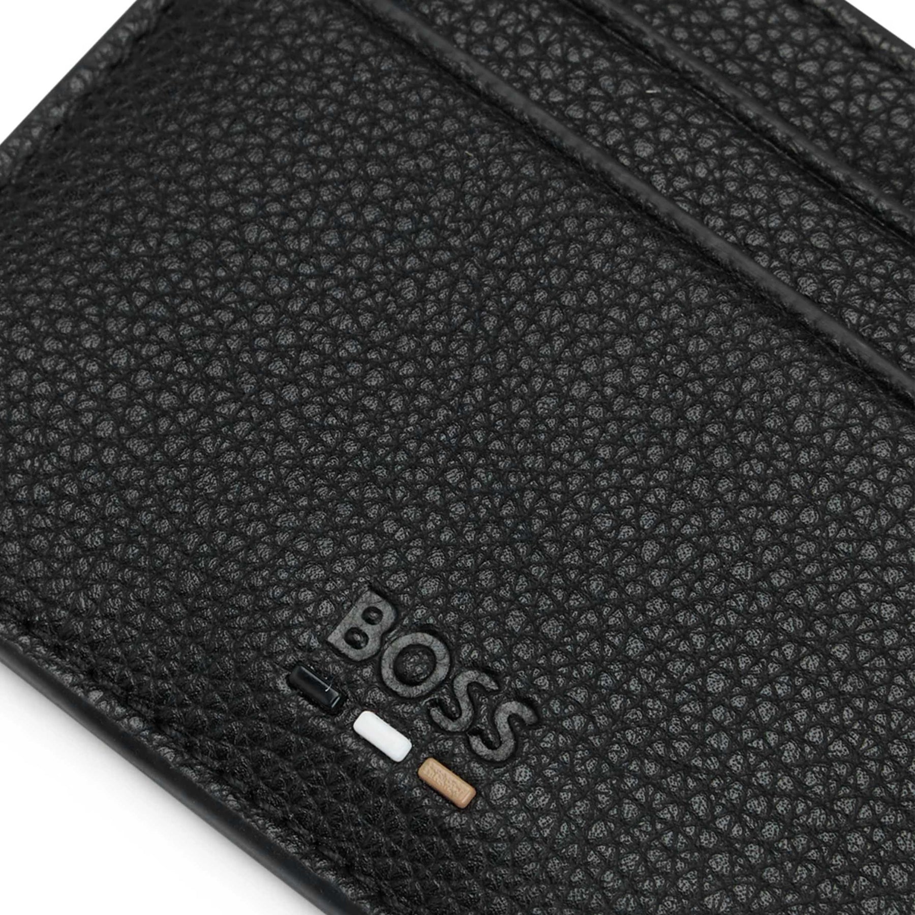 BOSS Ray_Card Holder in Black. A BOSS wallet in a smooth leather. 8 card holder slots on this BOSS design wallet. This Boss wallet is finished with a printed BOSS logo badge to the front. Dimensions (L/H/W): approx. 10.5 x 9.5 x 1.5 cm. An essential day to day item.