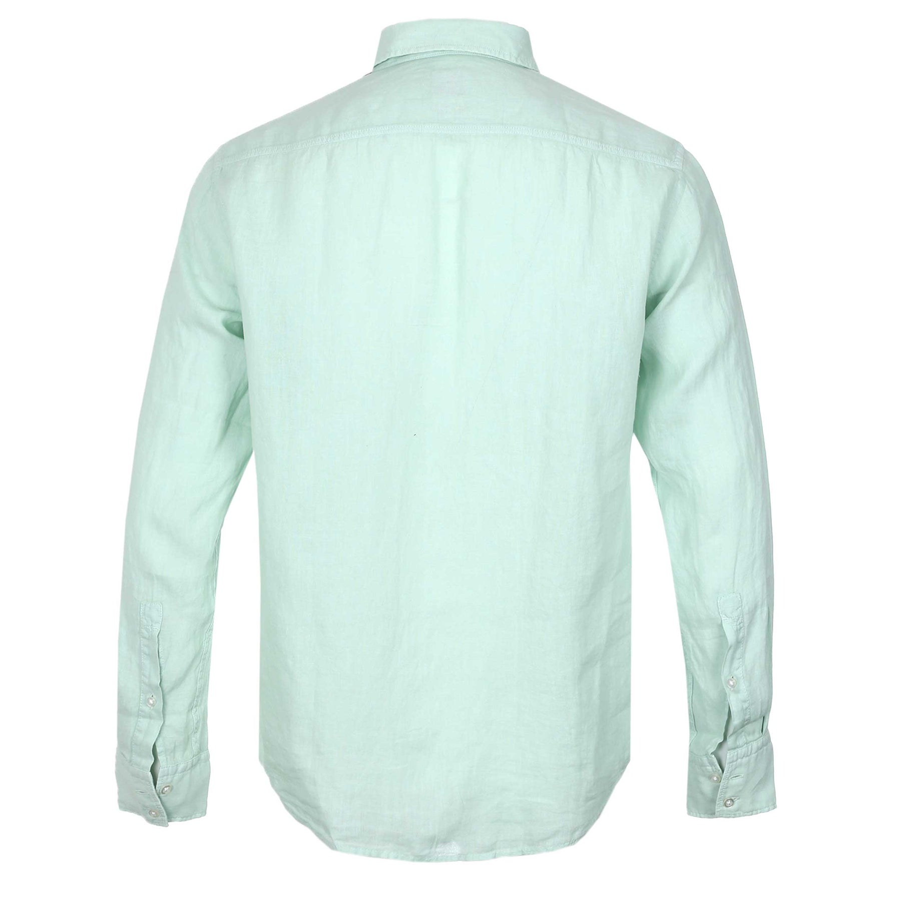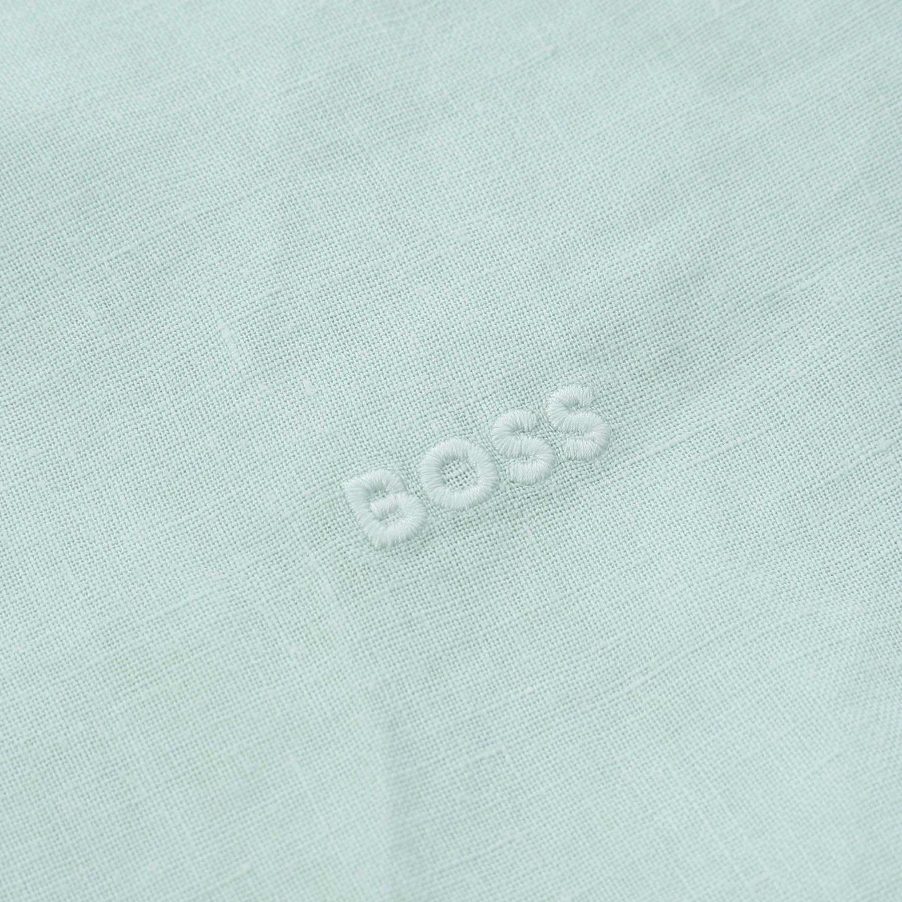 BOSS Relegant 6 M Shirt in Turquoise Aqua. Long sleeve shirt by BOSS. This regular fitting shirt arrives with a soft pointed collar. A full button fastening shirt constructed from 100% linen. Square cuffs. Tonal embroidered BOSS logo to the chest. Finished with a BOSS logo tab.