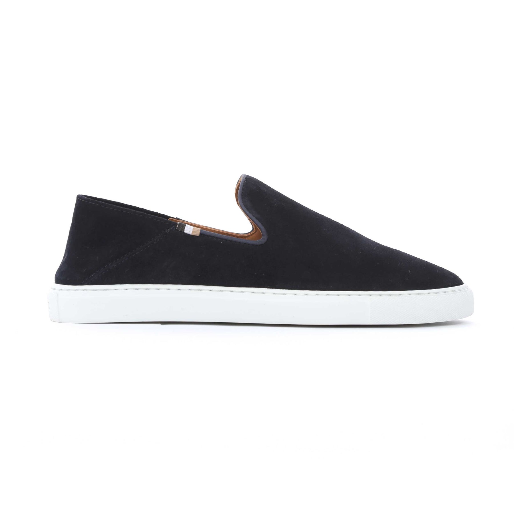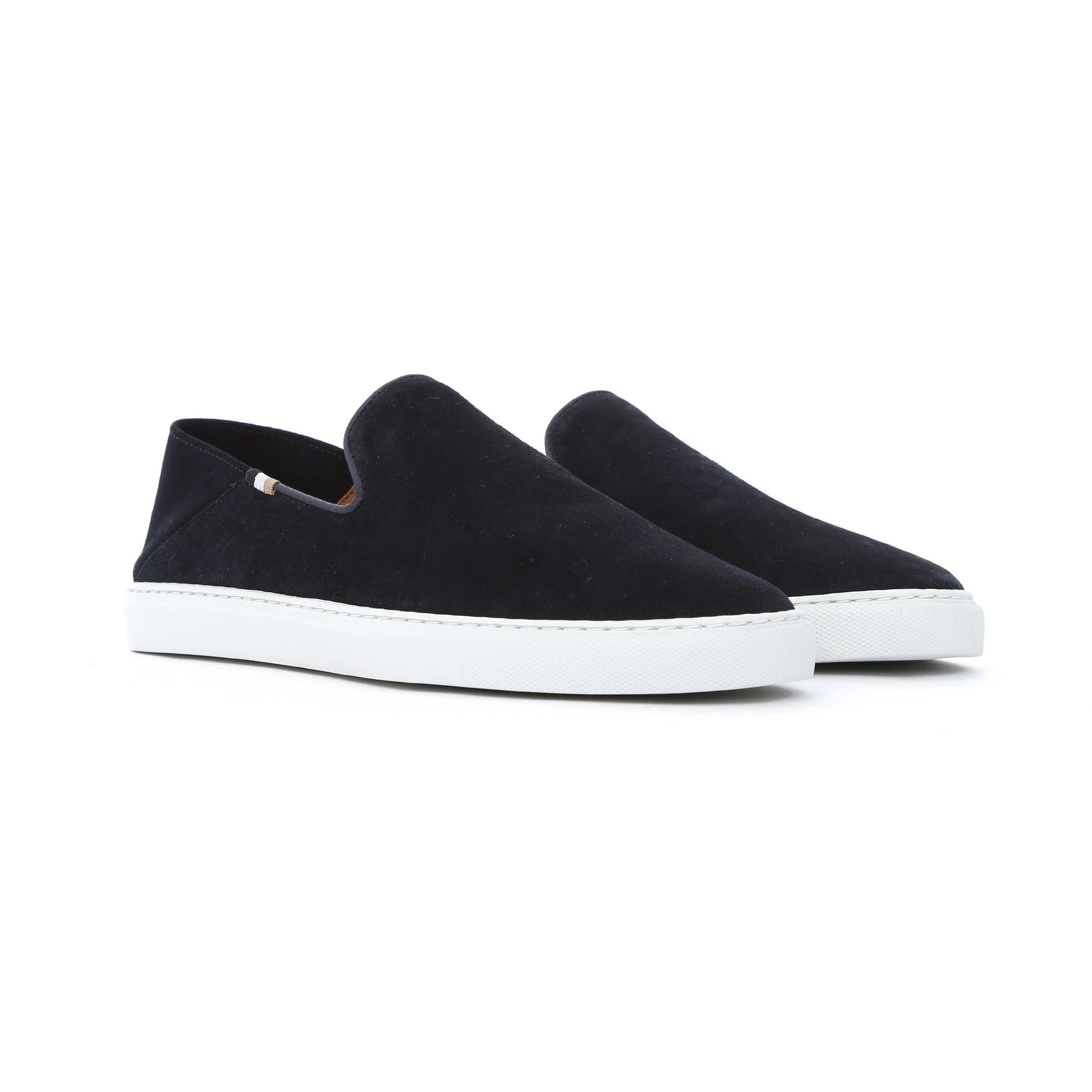 BOSS Rey Slon sd Shoe in Navy. Slip on loafer style shoe by BOSS. Crafted from suede with a rubber outsole. Contrasting colour sole unit. Tri-colour BOSS logo tab to the upper. Perfect to wear with chinos, shorts or jeans.