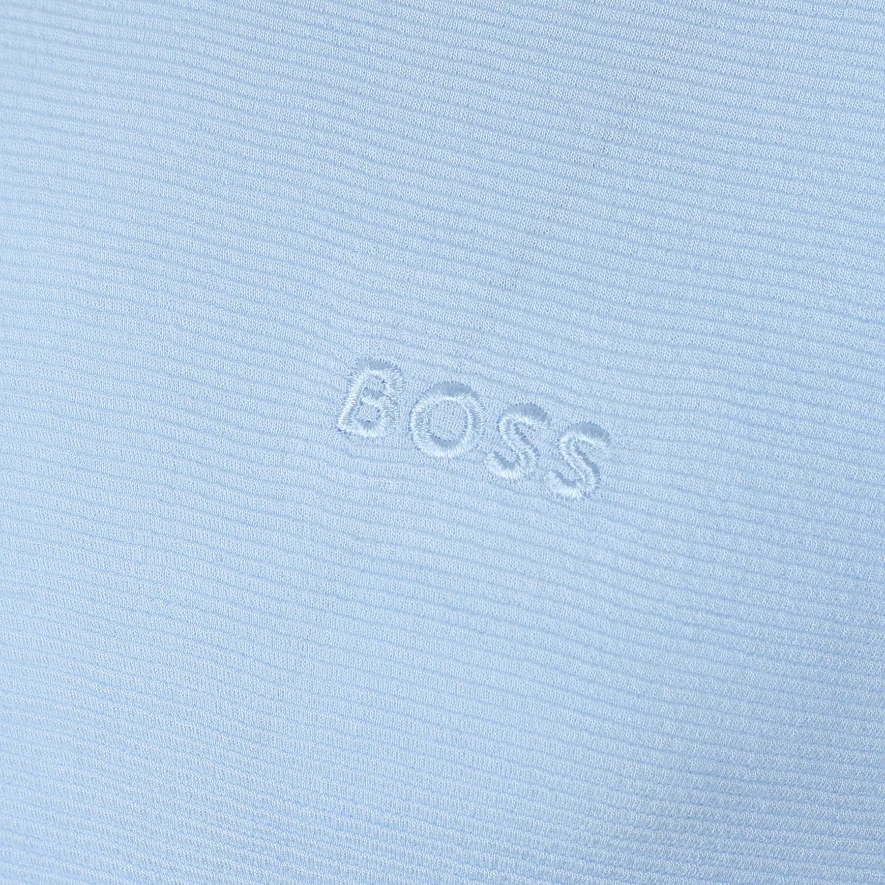 BOSS Rib T-Shirt in Sky Blue. A short sleeve, regular fit crew neck t-shirt by BOSS. This BOSS t-shirt features a horizontal ribbed design. Embroidered tonal logo to the chest. The perfect everyday t-shirt. Matching short available for a fresh looking twin set.