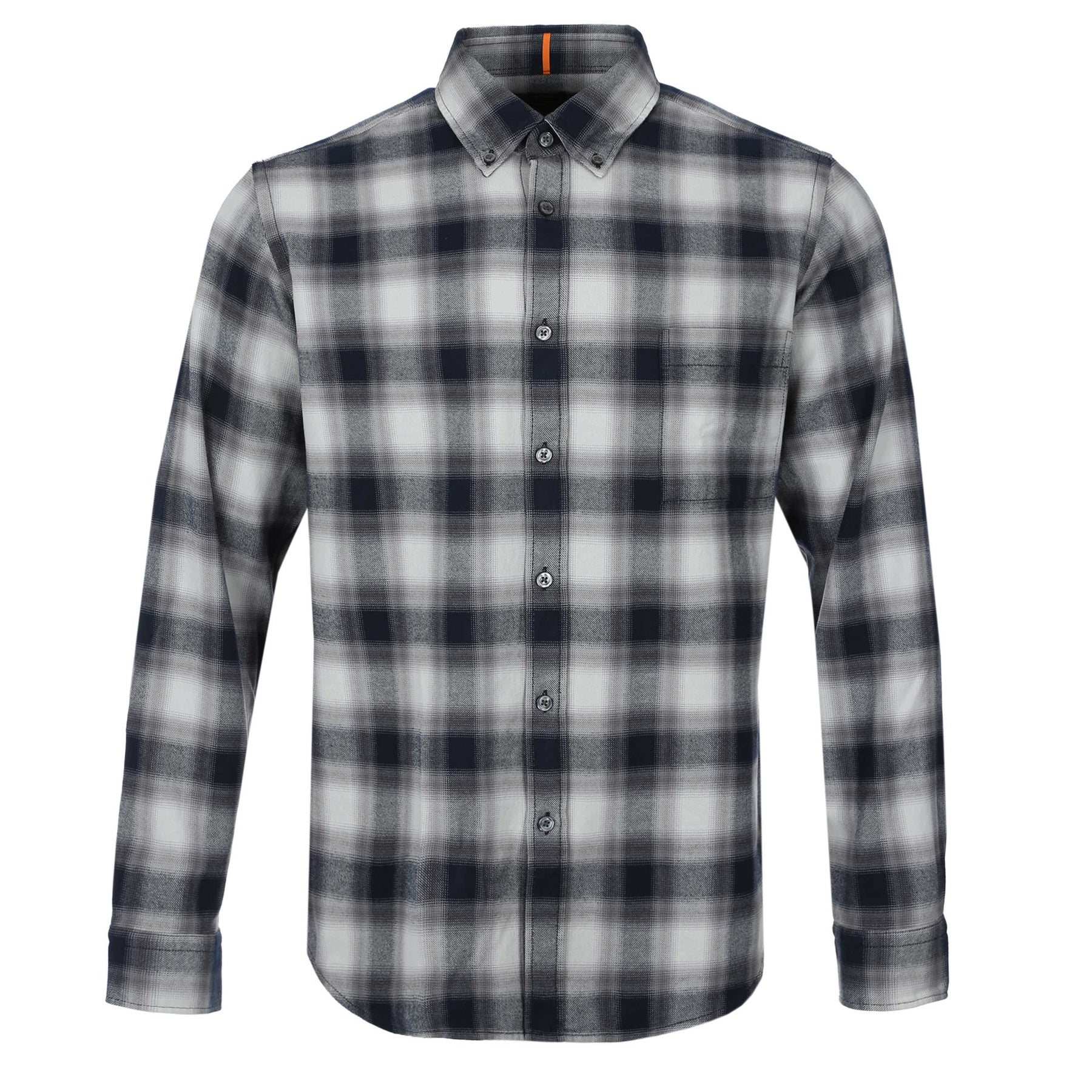 BOSS Rickert M Shirt in Blue Grey Check. Long sleeve shirt by BOSS. This regular fitting shirt arrives with a soft pointed collar with button down feature. Check design shirt with a breast pocket. A full button fastening shirt constructed from 100% cotton. Rounded cuffs. Finished with a BOSS logo tab.