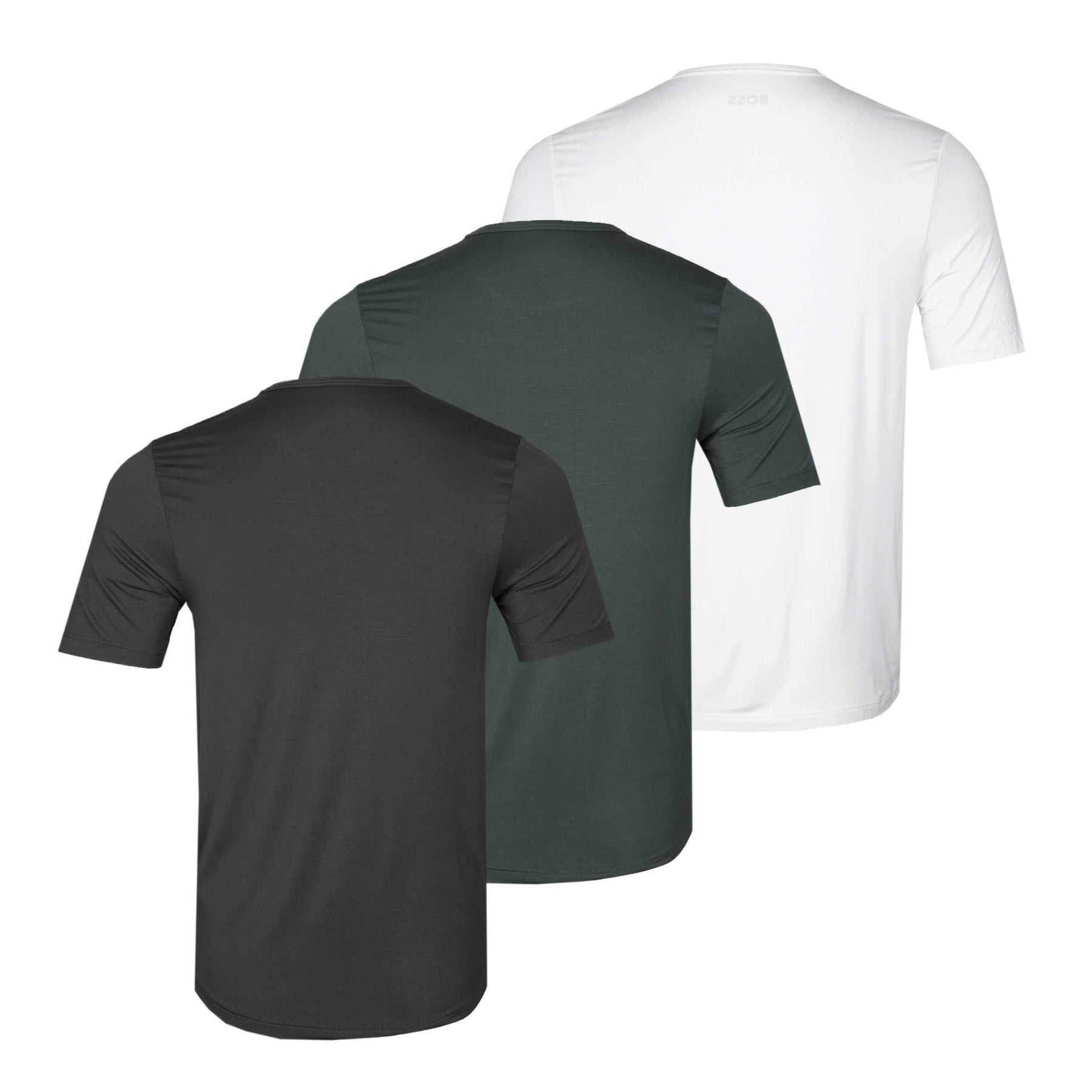 BOSS Tshirt RN 3P Bamboo T-Shirt in White, Khaki & Charcoal