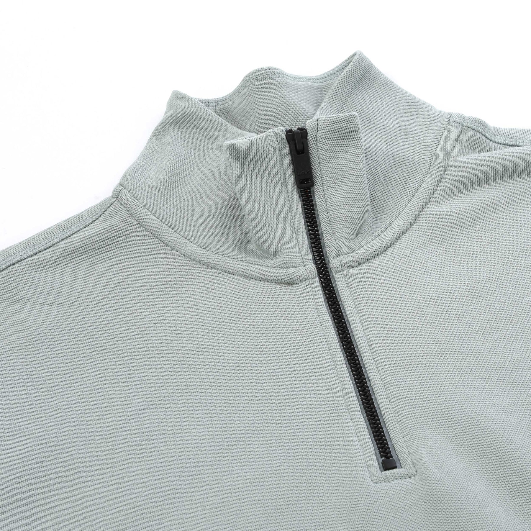BOSS Zetrust Sweat Top in Open Green. A dynamic sweat top by BOSS, cut to a regular fit. Featuring a quarter zip and BOSS branding on the chest. Cuffed at the sleeves and hem. Perfect for when you want style and comfort.