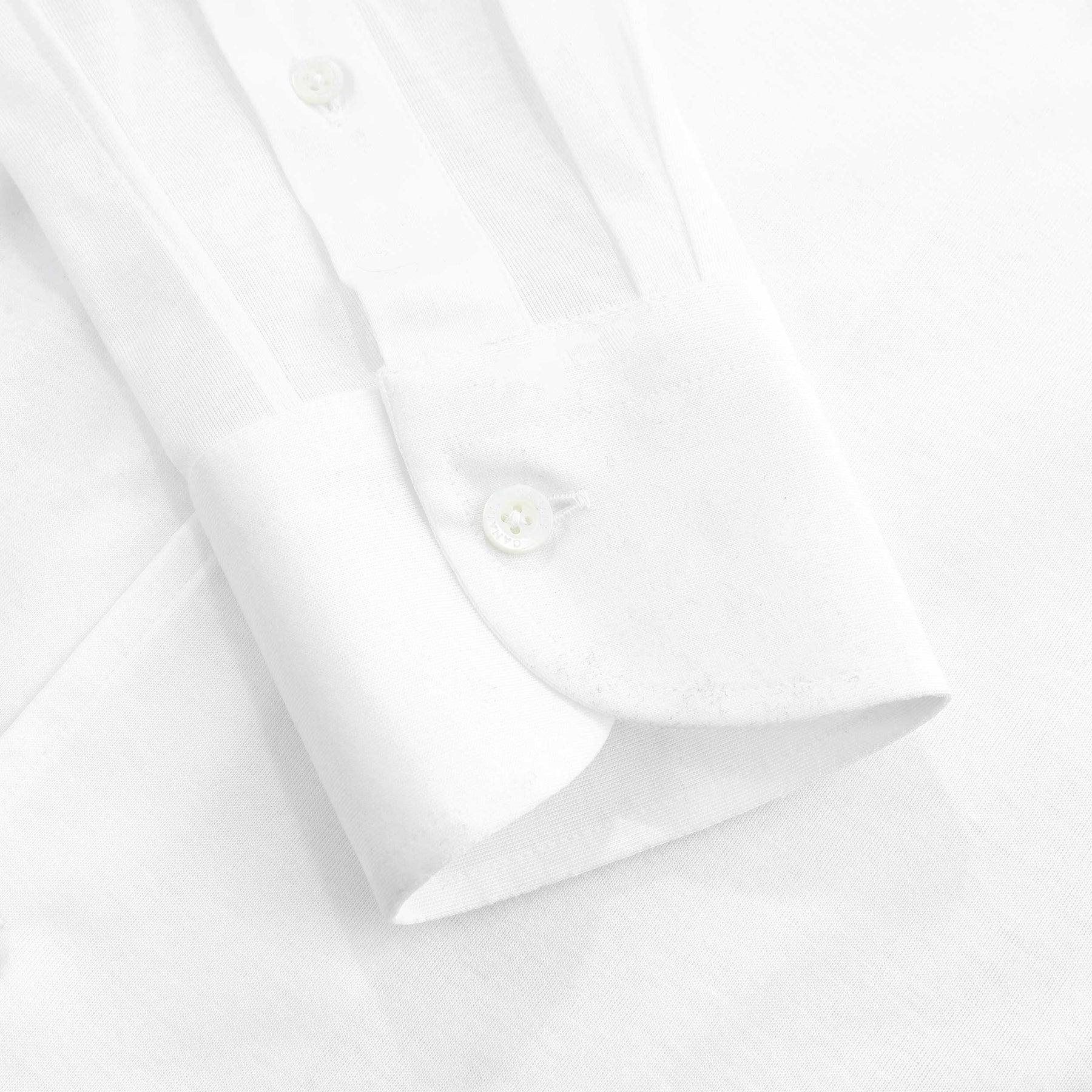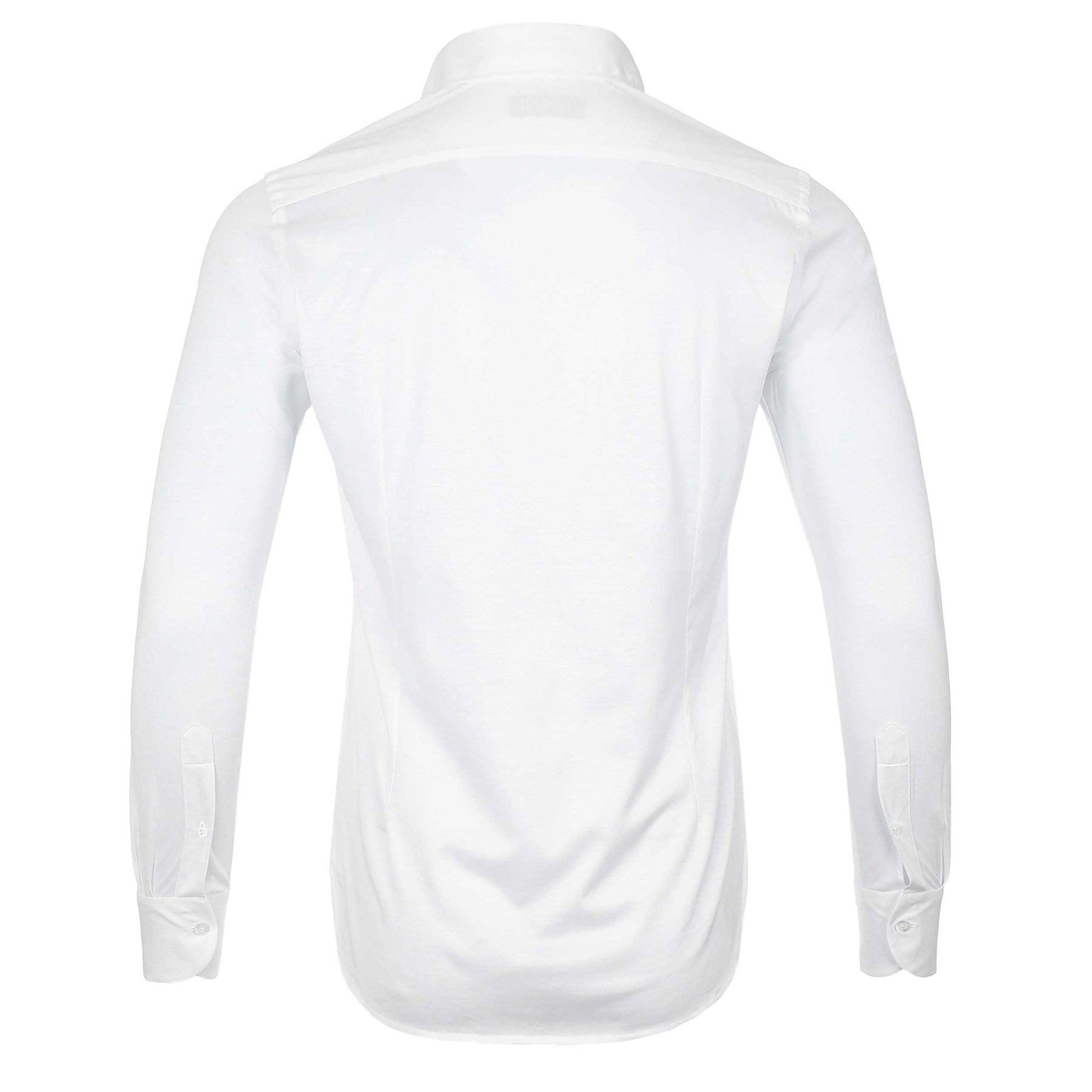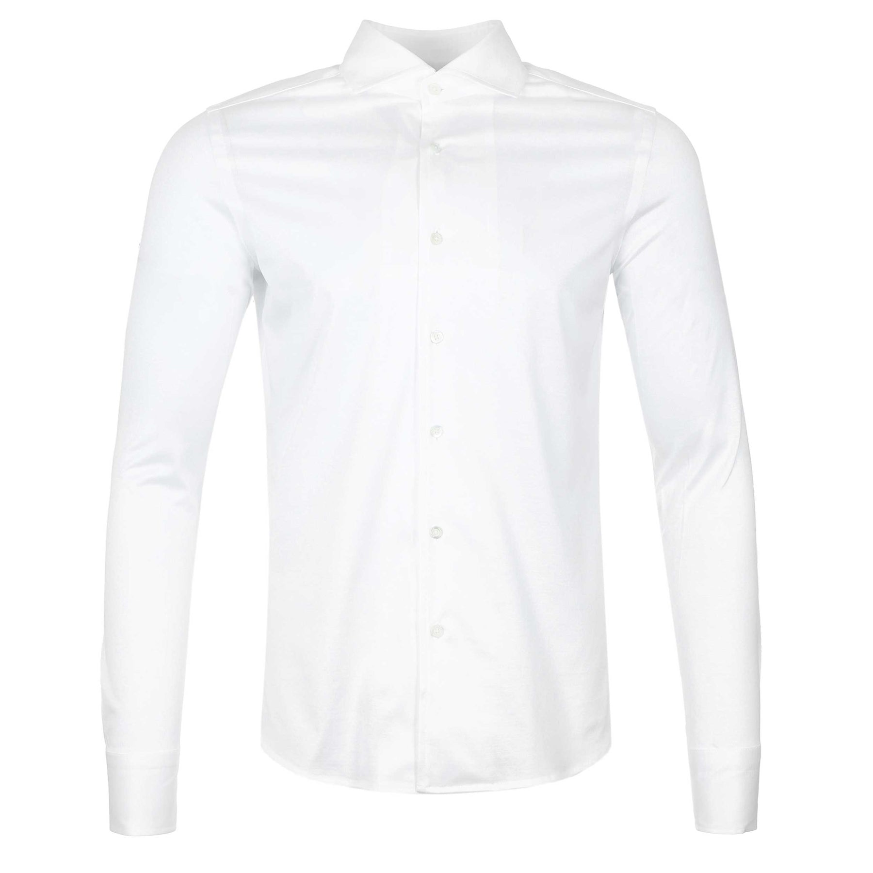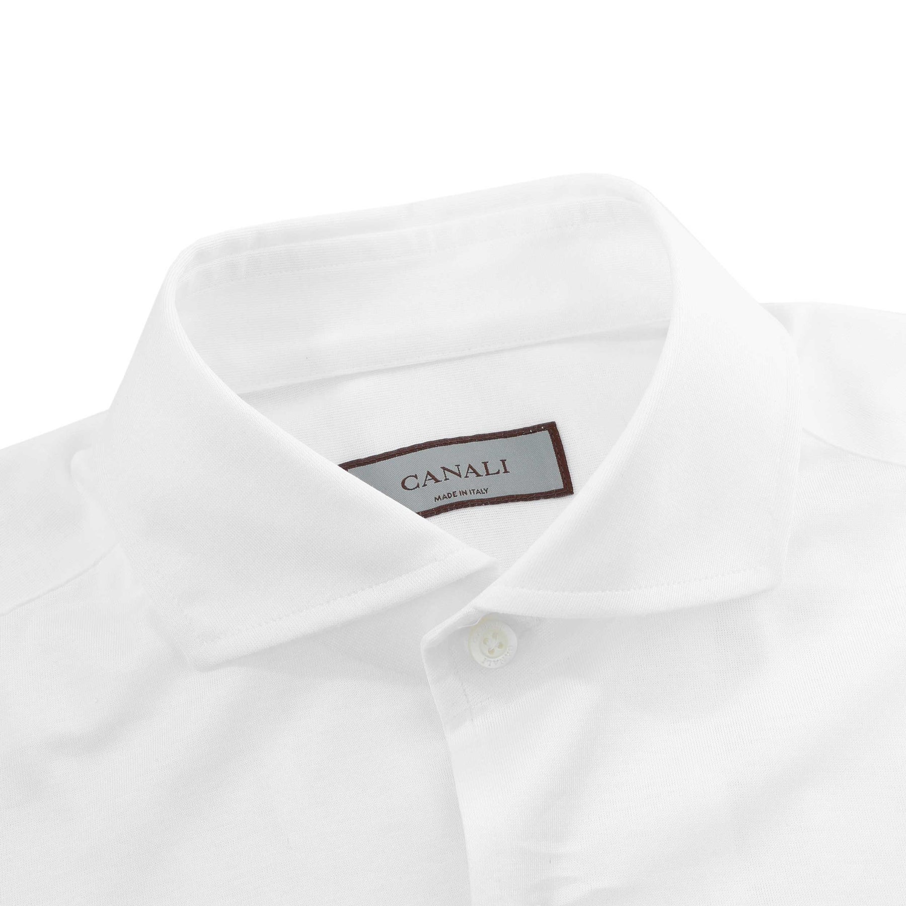Canali Jersey Stretch Shirt in White. Classic shirt by Canali cut to a slim fit. This shirt is a must have for any wardrobe which can be worn from business to evening wear. A plain design shirt with a full button fastening placket. Stretch properties to the shirt. Single rounded cuffs. Cut away collar.