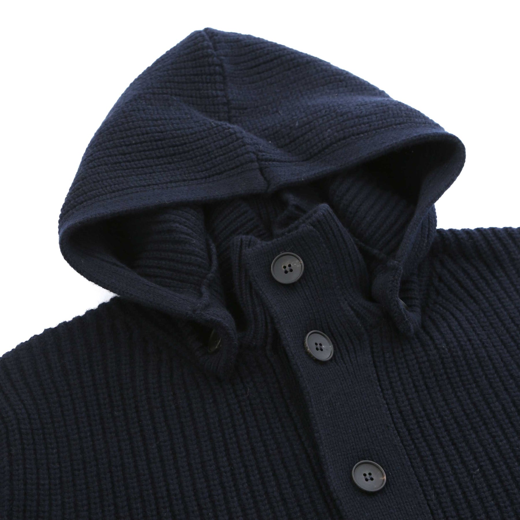 Filippo De Laurentiis Chunky Button Thru Hooded Cardigan in Navy