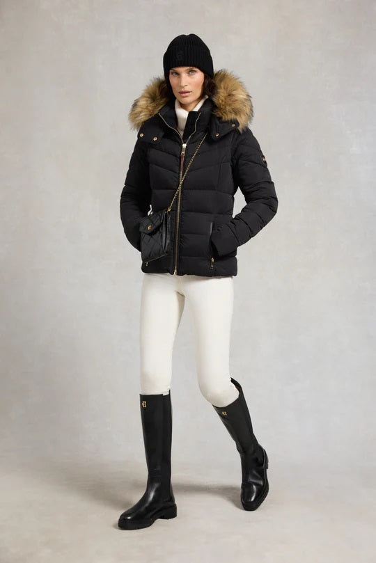Holland Cooper Classic Embroidered Ladies Beanie Hat in Black