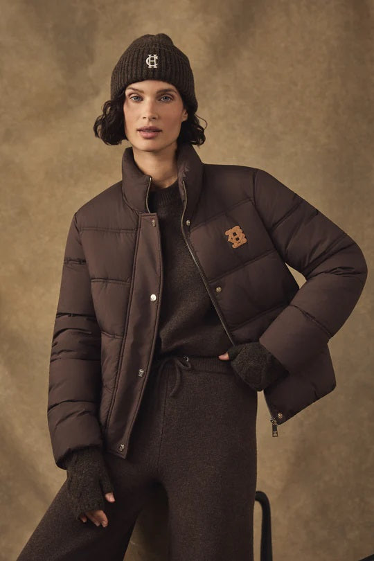 The beanie showcases a timeless chunky rib knit design that offers a slightly oversized fit. It is adorned with exquisite embroidery on the turn-back cuff, adding a signature Holland Cooper touch that sets this hat apart from others. The rich chocolate colour elevates any winter ensemble, matching seamlessly with both casual and formal attire.