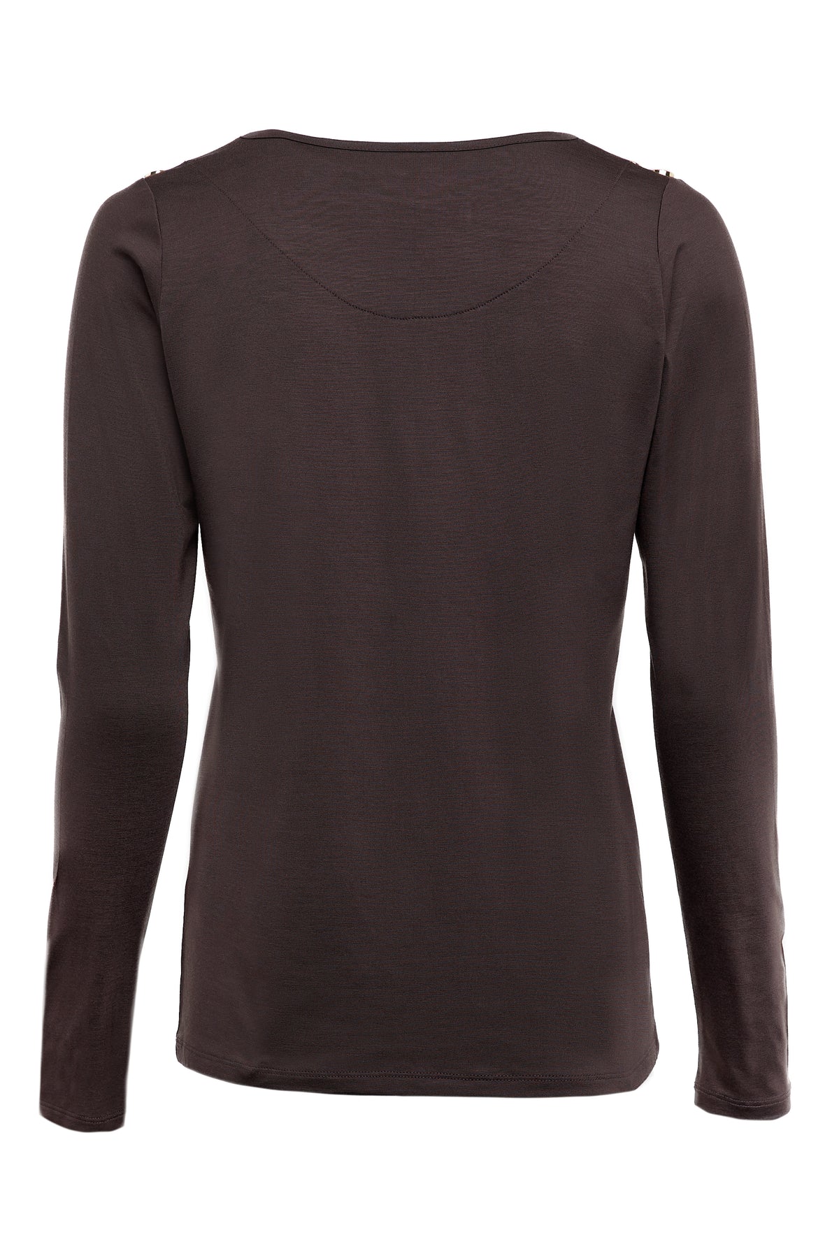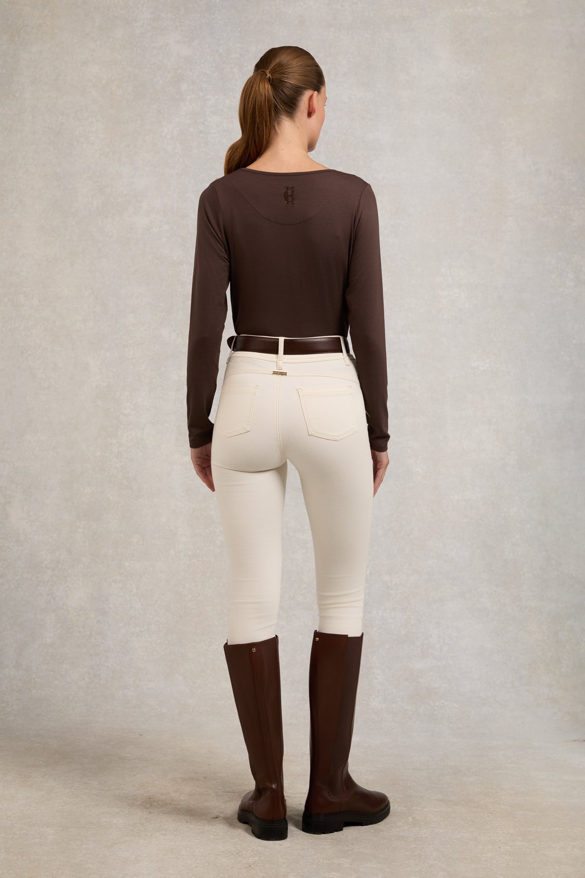 Holland Cooper Long Sleeve V Neck Tee in Coffee