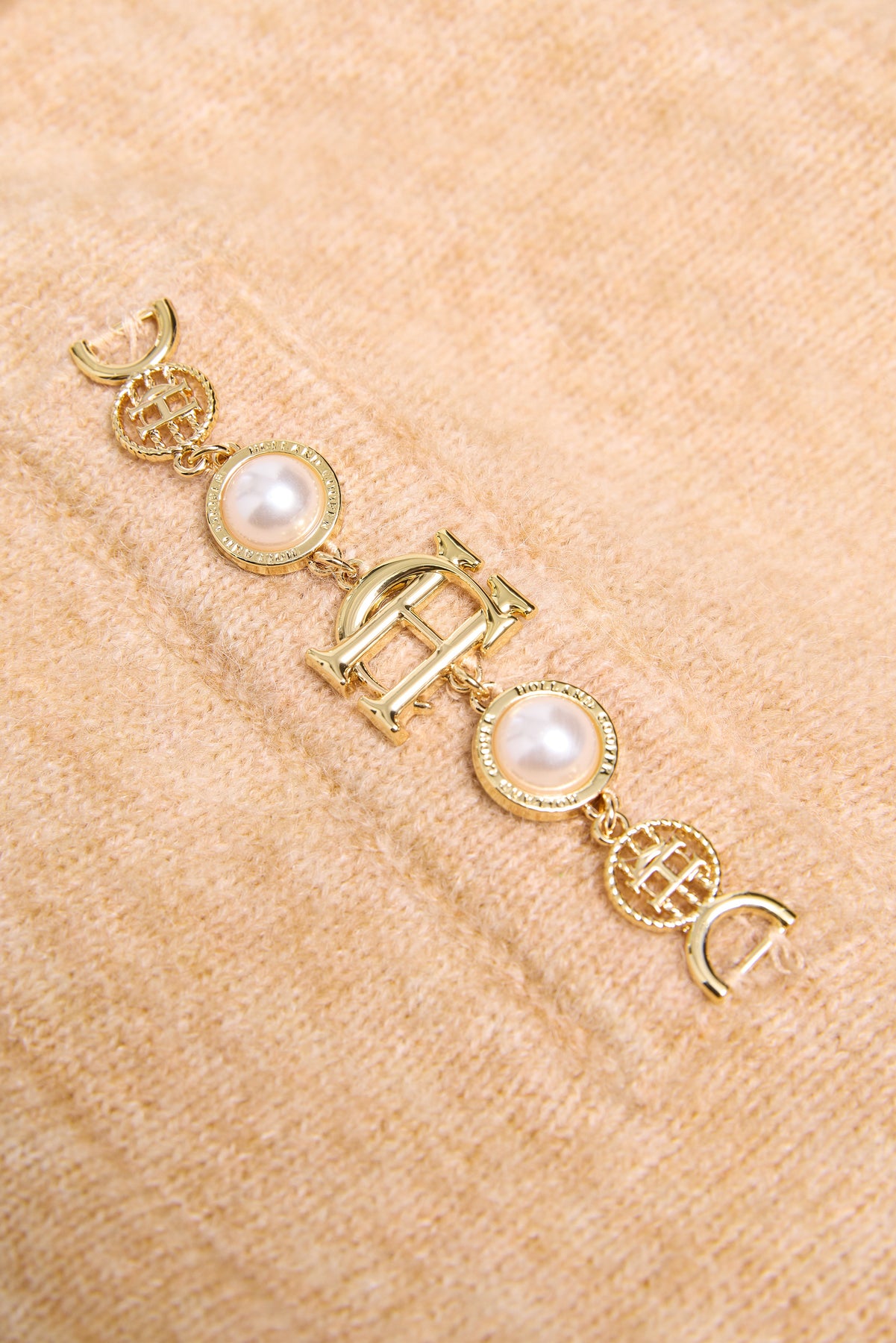 One of the standout features of this exquisite cardigan is its chic gold rivet embellishments. Not only do these details add a touch of opulence, but they also reflect the brand's commitment to luxury. Additionally, the cardigan is adorned with signature gold buttons and convenient chest pockets, further enhancing its stylish appeal. The iconic HC charm located on the welt pocket is the finishing touch that showcases the brand’s dedication to distinct design.