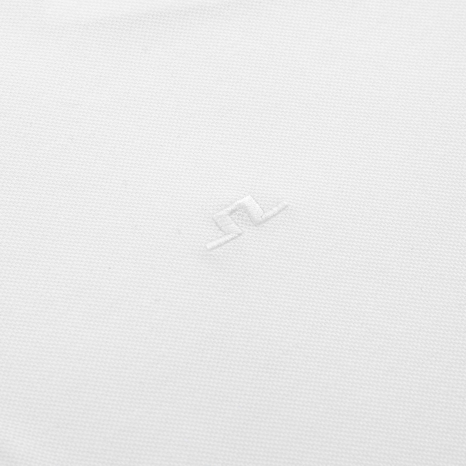J.Lindeberg Verse Polo Shirt in White. A refined everyday essential, the Verse Polo is crafted from breathable piqué for lightweight comfort and a structured feel. Finished with a ribbed collar, classic button placket, and the embroidered bridge logo at the chest, it delivers understated polish without trying too hard. Built for versatility, it works just as well with tailored trousers as it does with shorts — an easy upgrade for off-course, off-duty dressing.