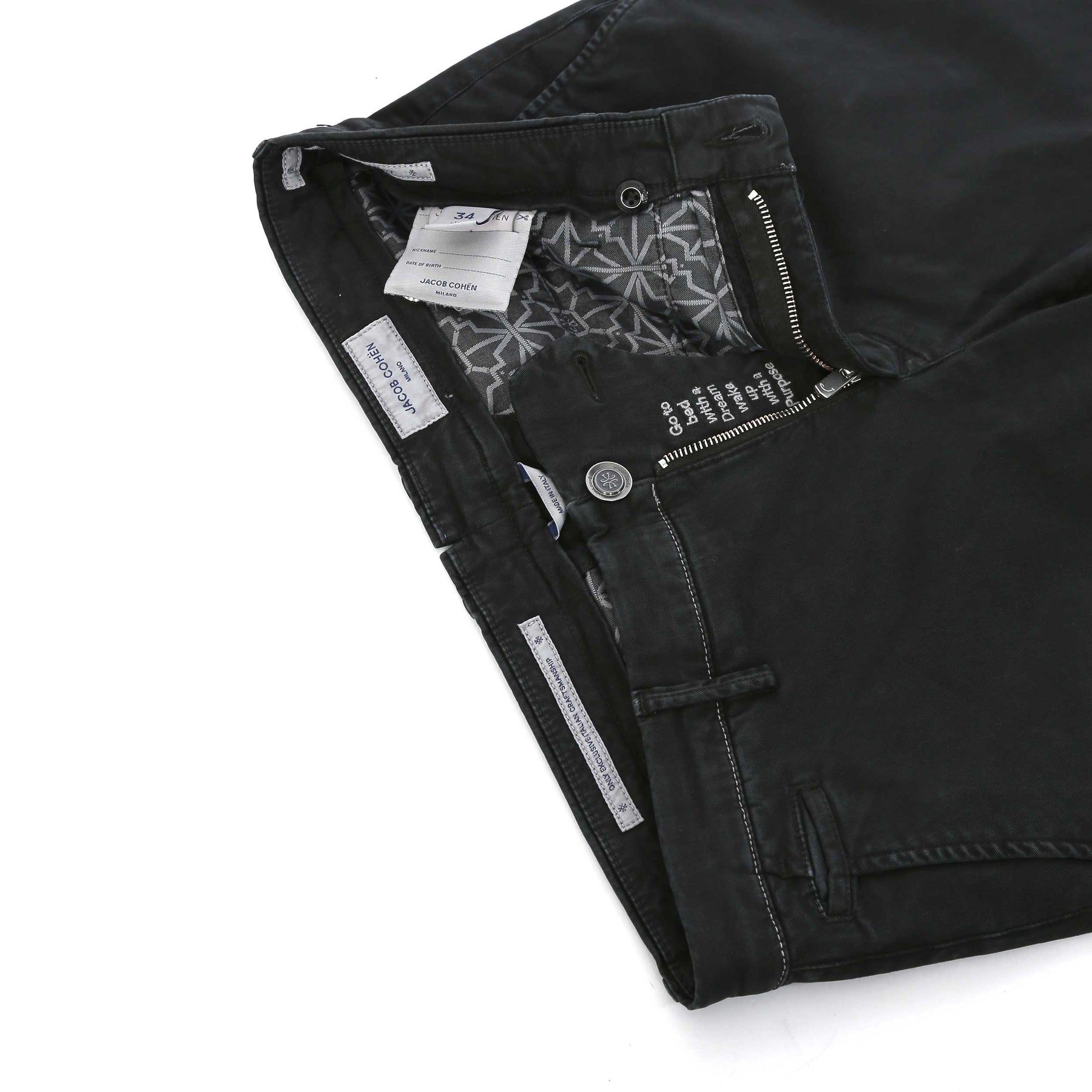 Jacob Cohen Bobby Comf Chino in Black. A high quality, cotton blend chino by Jacob Cohen. A classic chino style design, with a button and zip fly fastening. Featuring belt loops and finished with a subtle Jacob Cohen logo on the rear.