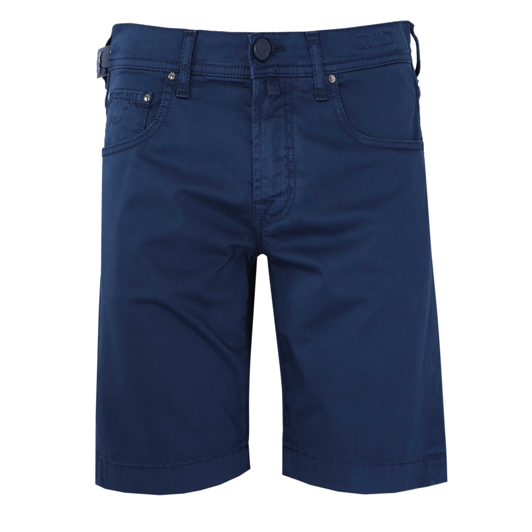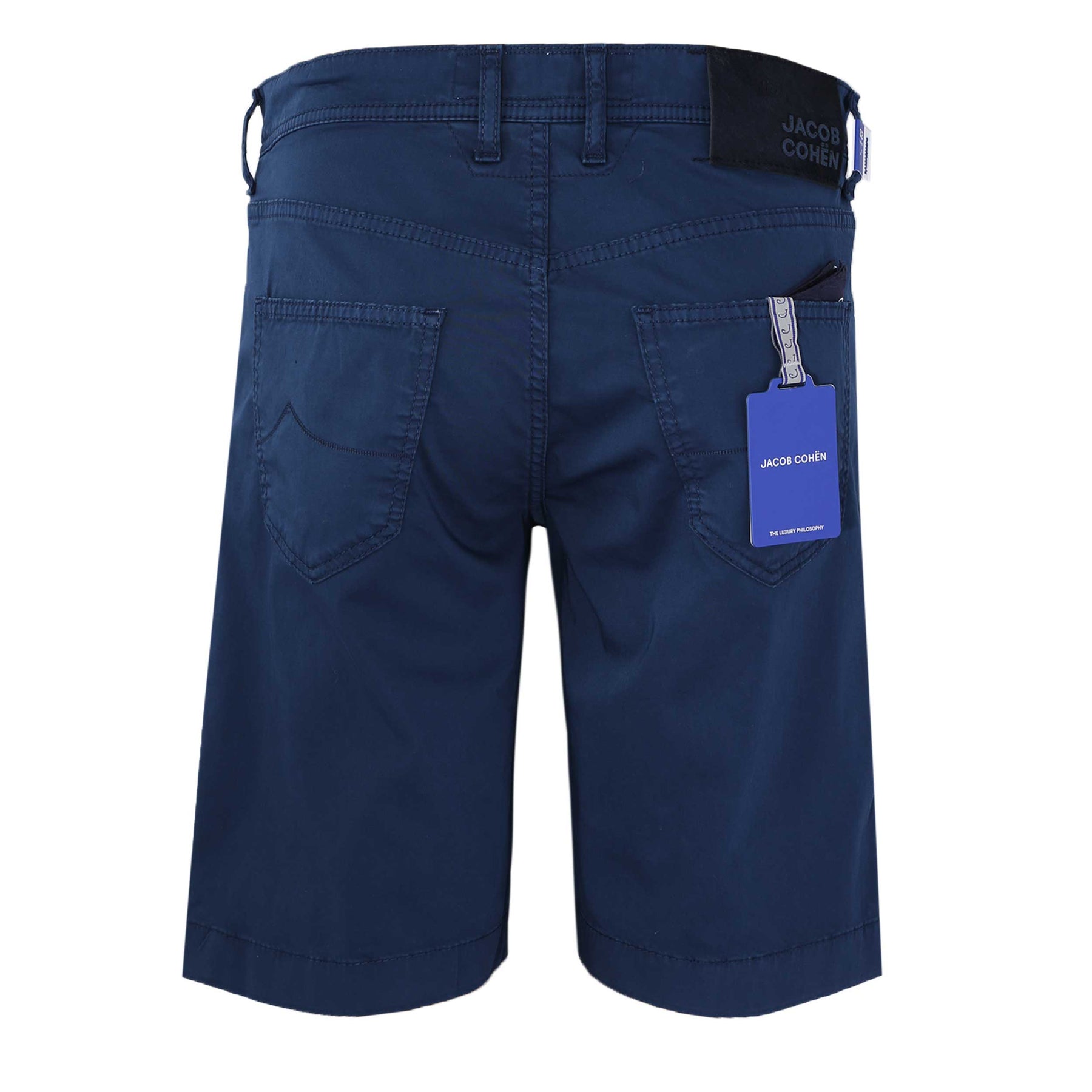 Jacob Cohen Nicholas Short in French Blue. A high quality, cotton blend short by Jacob Cohen. They feature a 5 pocket jean style and a Jacob Cohen brand badge to the rear. Button and fly zip fastening. Tonal horse hair logo badge to the waistband.