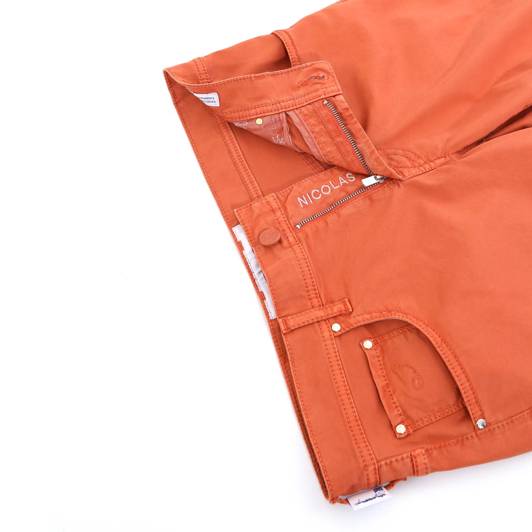 Jacob Cohen Nicholas Short in Orange. A high quality, cotton blend short by Jacob Cohen. They feature a 5 pocket jean style and a Jacob Cohen brand badge to the rear. Button and fly zip fastening. Tonal orange horse hair logo badge to the waistband.
