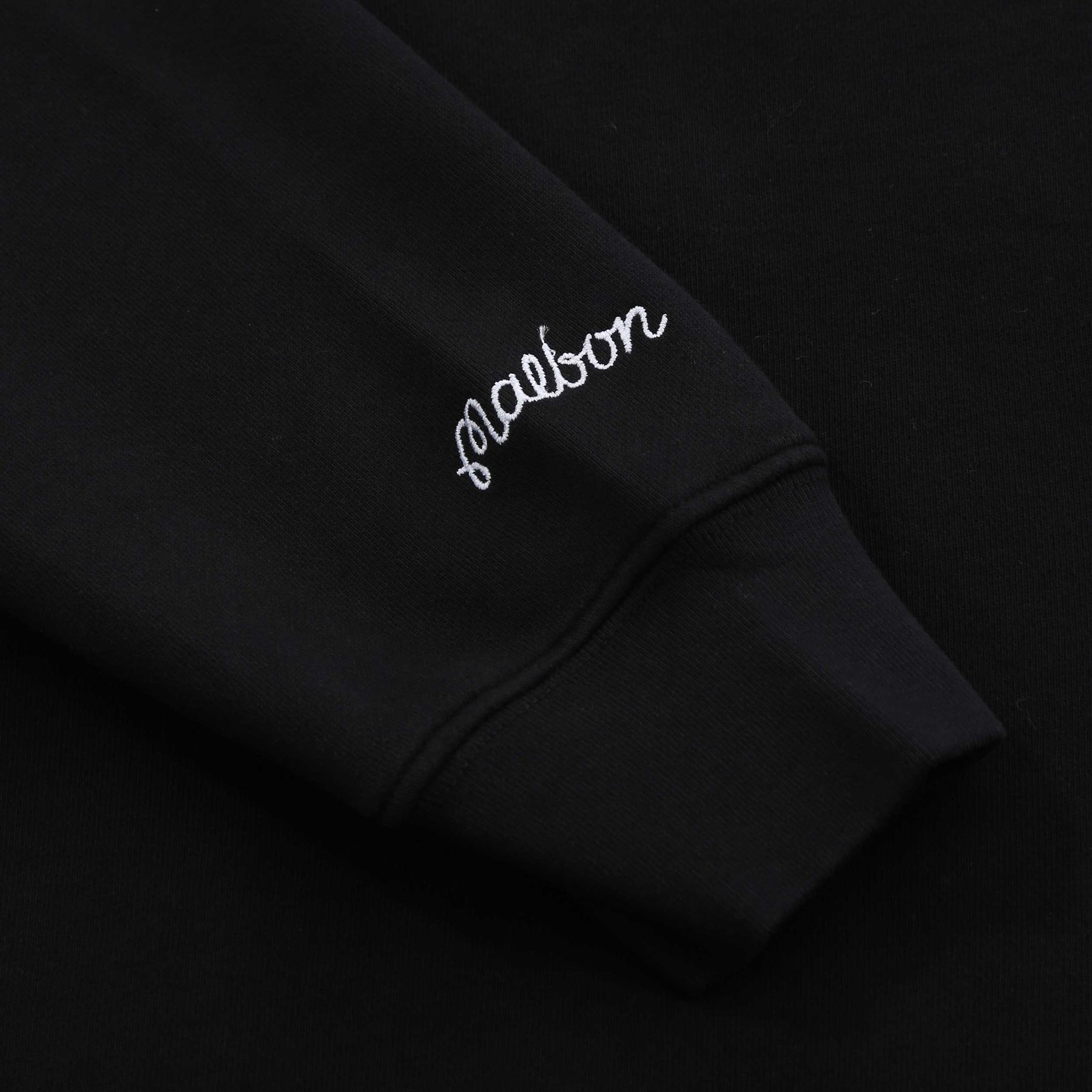 Malbon Range Cooper Sweatshirt in Black. A crew neck sweatshirt by Malbon. This classically styled sweatshirt arrives with long sleeves. Embroidered Malbon logo badge to the chest. Ribbed collar, cuffs and waistband. Finished with a Malbon script logo to the right cuff.