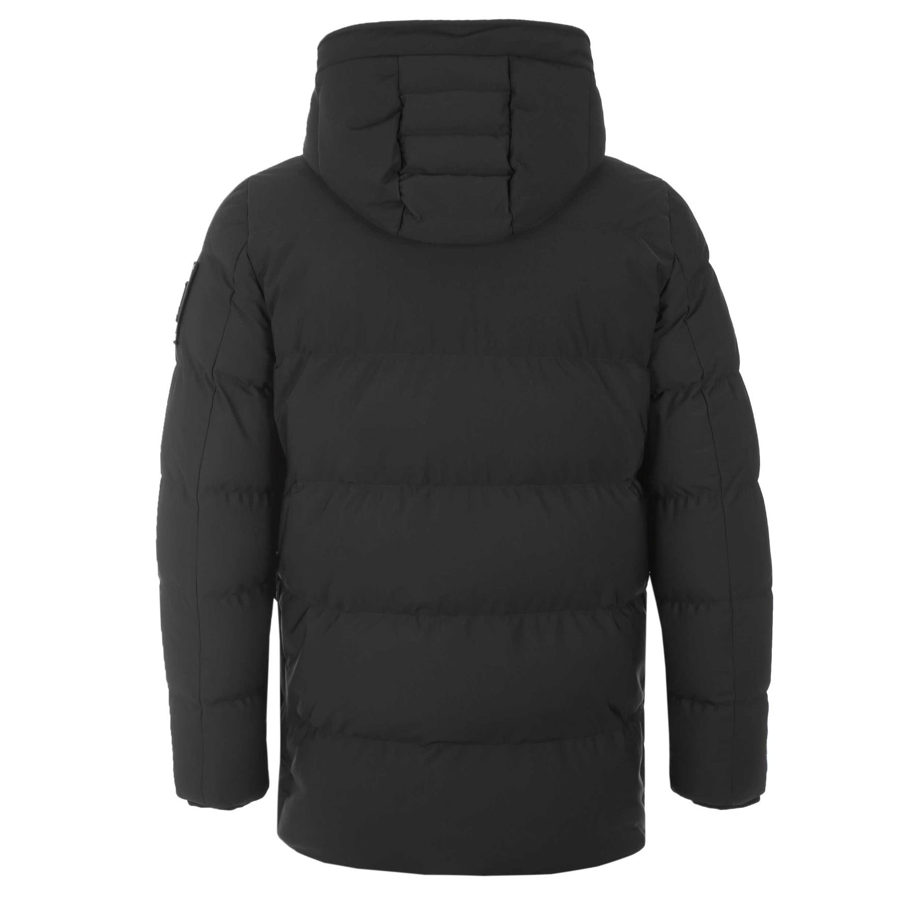 Moose Knuckles Valleyfield 2 Jacket in Black. A slim fitting Moose Knuckles coat. Two-way front zipper with a button-up storm flap. Elasticated cuffs. Two zip fastening pockets to the chest. Two dual entry pockets to the waist with side entry and flap fastening detail. Detachable hood and two front flap pockets. D ring detailing to the chest. Finished with a metal logo badge to the sleeve (colour of metal badge may vary black/gunmetal/silver.)