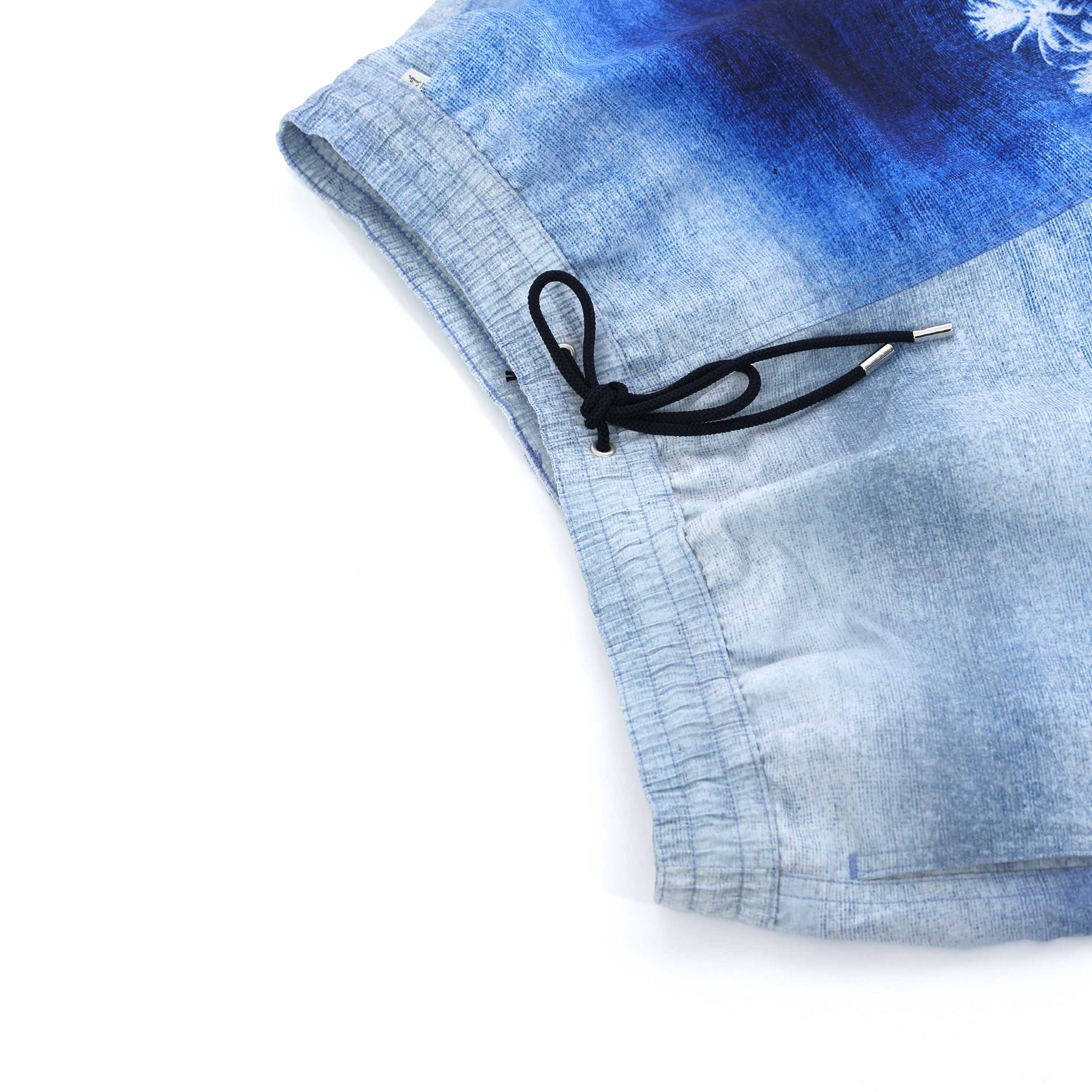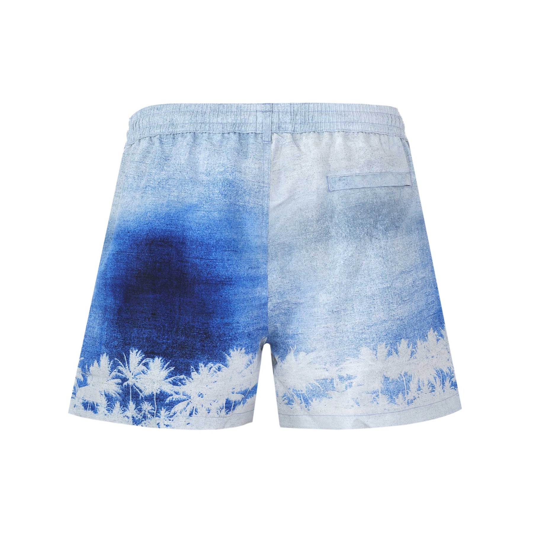 Paul Smith Palm Sunset Swim Short in Blue. This Paul Smith swim short comes fully lined with a quick-dry fabric in a mid length. Elasticated waistband with drawstring fastening. 2 side pockets and a zip fastening seat pocket. Paul Smith palm tree design to the swim short.