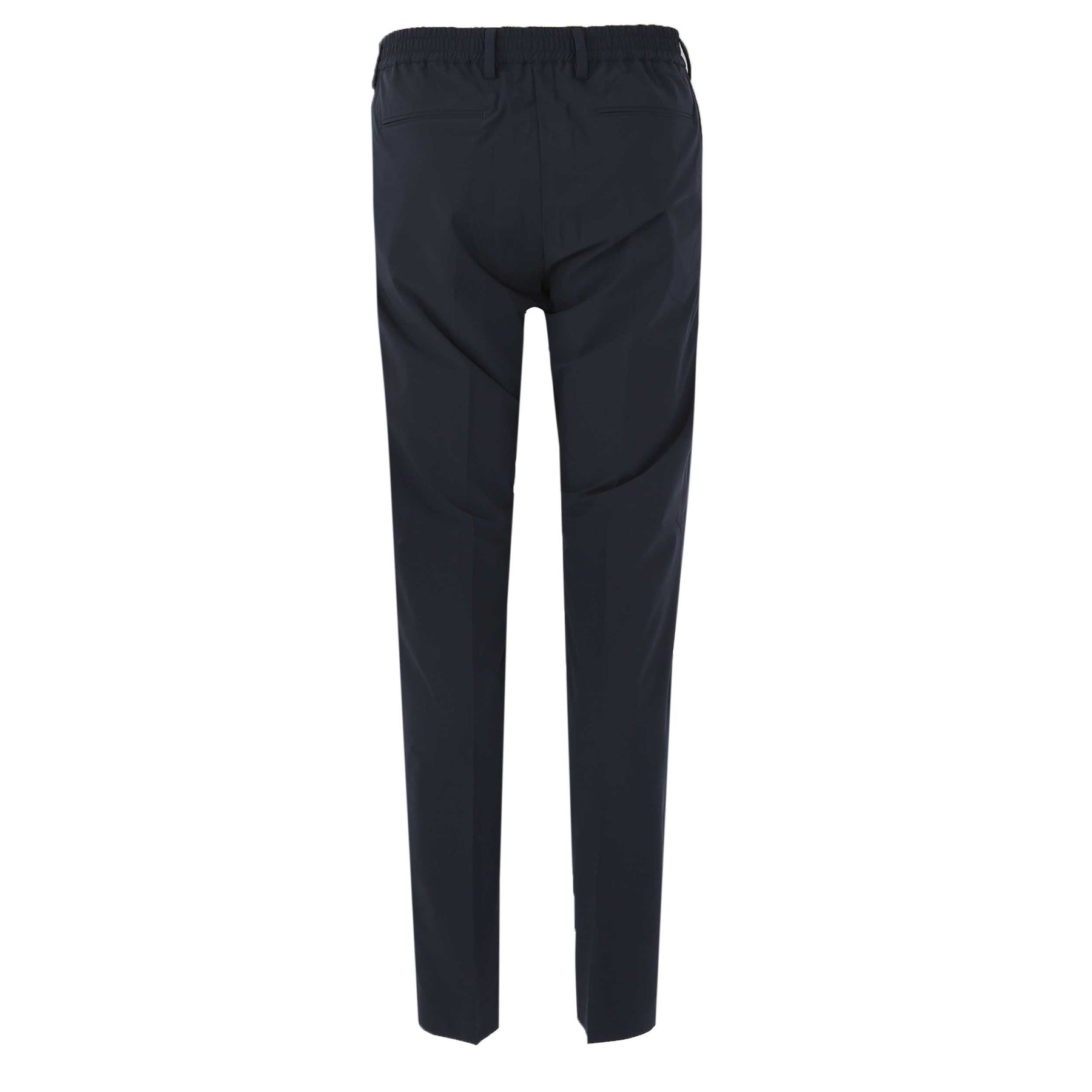Paul Smith Pleated Trouser in Dark Navy. Trouser by Paul Smith. Constructed from a technical fabric with a tapered fit. Hook and eye fastening waist with zip fly. Single pleat design to the front of the trouser. Elasticated waistband. Team up with your t shirt, shirt or jacket.