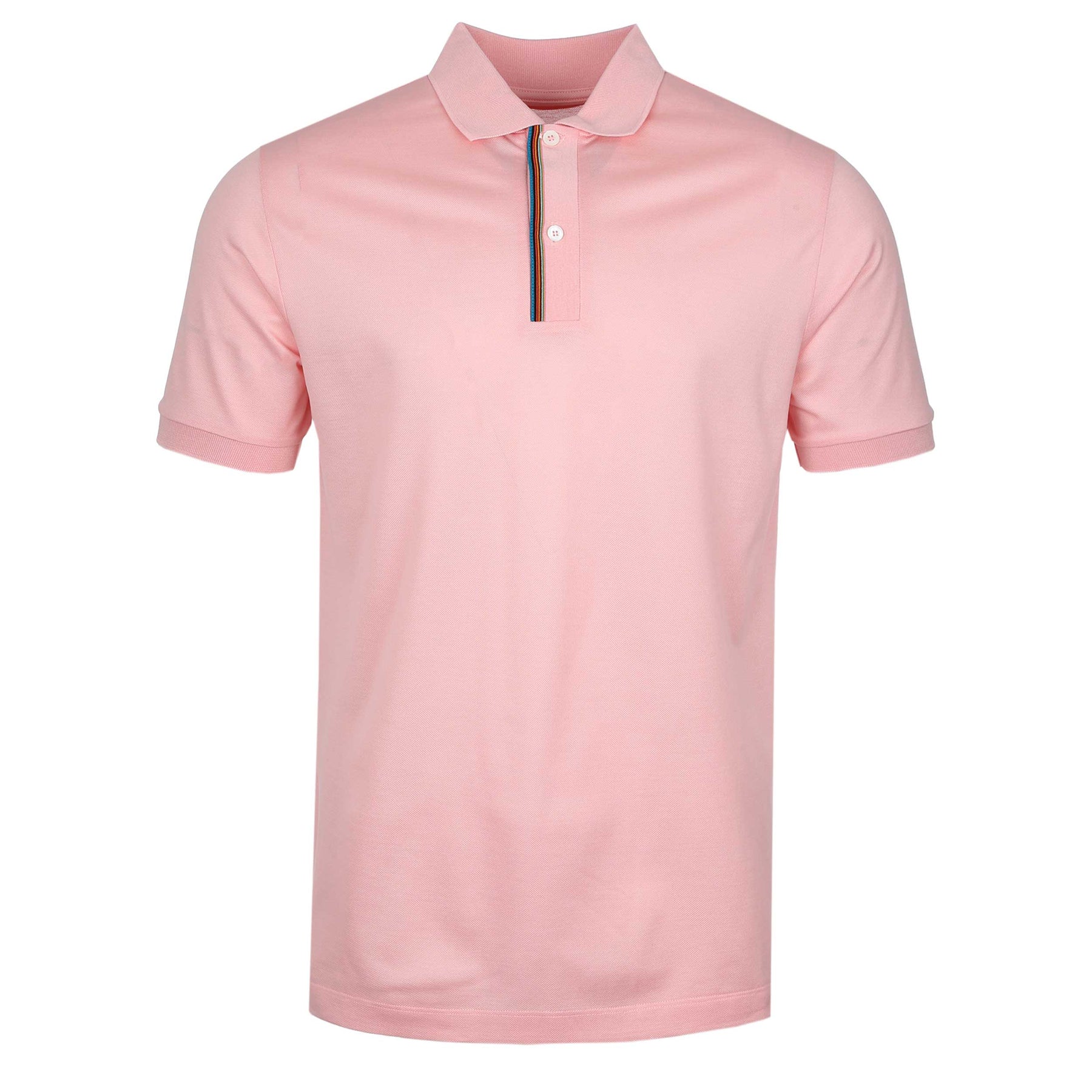 Paul Smith Signature Stripe Polo Shirt in Pink. A short sleeve polo shirt by Paul Smith. Classic polo shirt style collar. 2 button fastening placket. Classic Paul Smith signature stripe trim design to the placket. Ribbed collar and cuffs. Perfect for everyday wear.