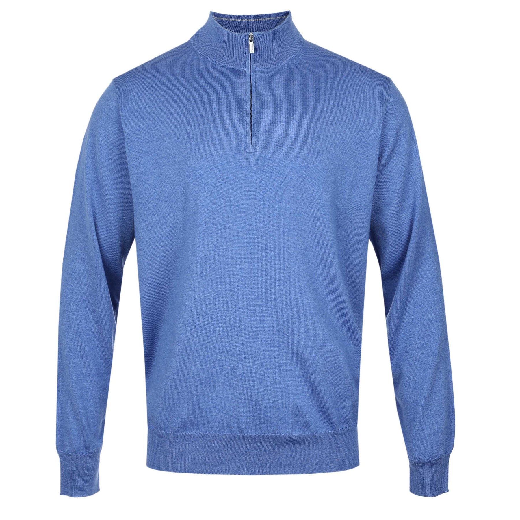 Peter Millar Autumn Crest 1/4 Zip Knitwear in Evening Tide Blue. Elevate your seasonal wardrobe with our meticulously crafted long-sleeved mock turtleneck featuring extra-fine merino wool mix. Our carefully designed piece boasts a refined touch, accentuated by a convenient zip and ribbed details to the neck, cuffs and waistband.