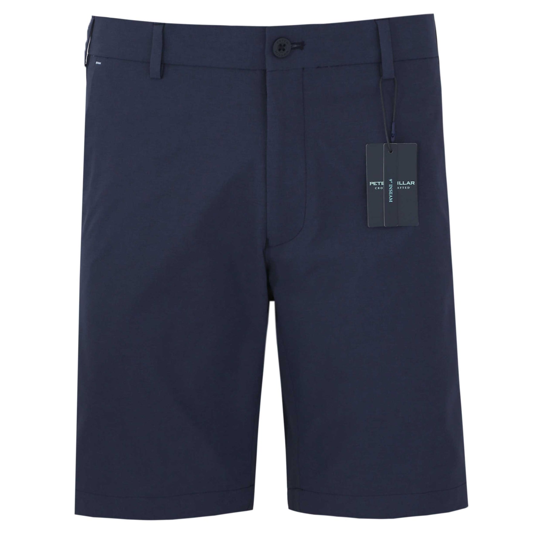 Peter Millar Surge Performance Short in Navy. The surge short blends high-performance functionality with a sharp, everyday profile. Built with water-resistant protection, advanced moisture-wicking and unrestricted four-way stretch, it’s designed for constant movement without compromise. Finished with a modern 9" inseam for a streamlined fit that works on and off the clock.