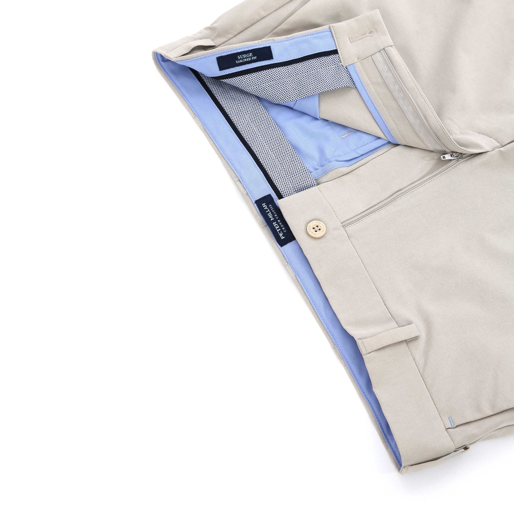 Peter Millar Surge Performance Short in Oatmeal. The surge short blends high-performance functionality with a sharp, everyday profile. Built with water-resistant protection, advanced moisture-wicking and unrestricted four-way stretch, it’s designed for constant movement without compromise. Finished with a modern 9" inseam for a streamlined fit that works on and off the clock.