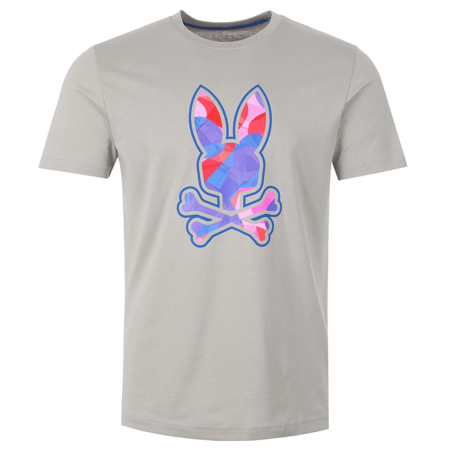 Psycho Bunny Norridge Graphic T-Shirt in Oyster. Classic T-Shirt by Psycho Bunny. Classically styled t shirt with a crew neck and short sleeves. Large colourful Psycho Bunny logo to the front of the t shirt.