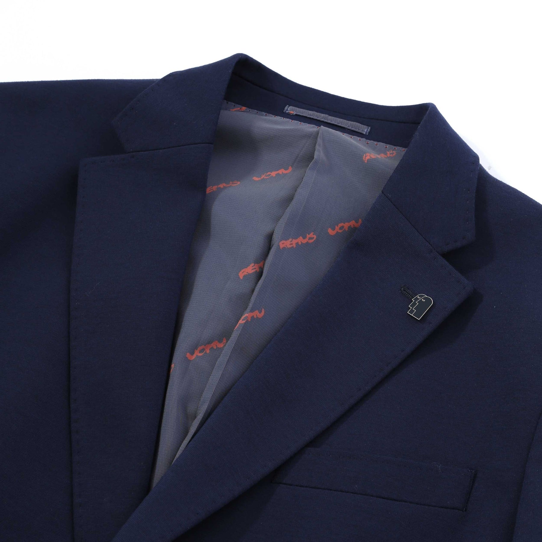 Remus Uomo Alto Jersey Jacket in Navy. Jacket by Remus Uomo. This slim fit jacket arrives with notch lapels. Single breasted jacket with flap pockets. Solid colour jacket with contrasting Remus Uomo branded lining. 2 rear vents to the rear of the jacket. Remus Uomo pin badge to the lapel of the jacket that is detachable.