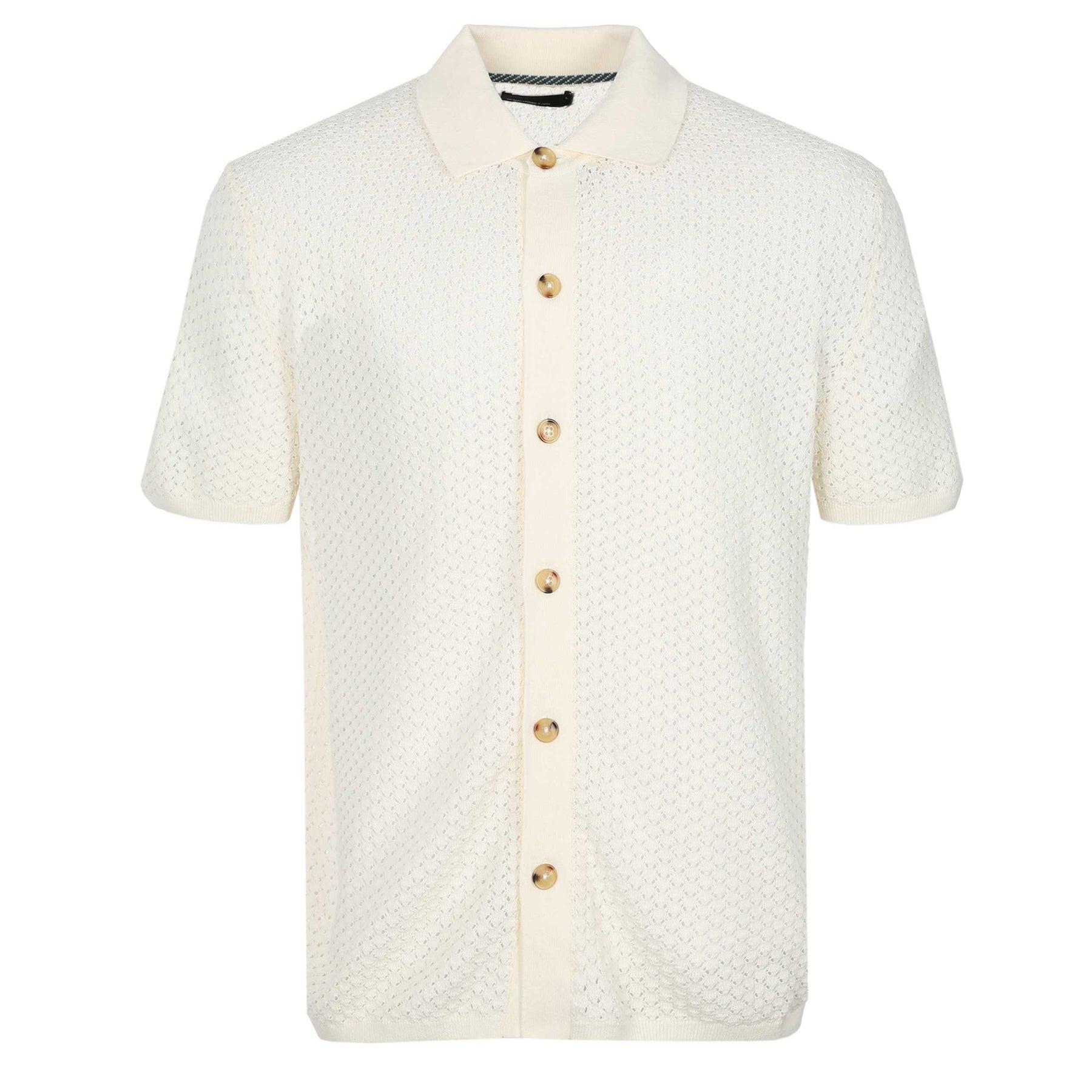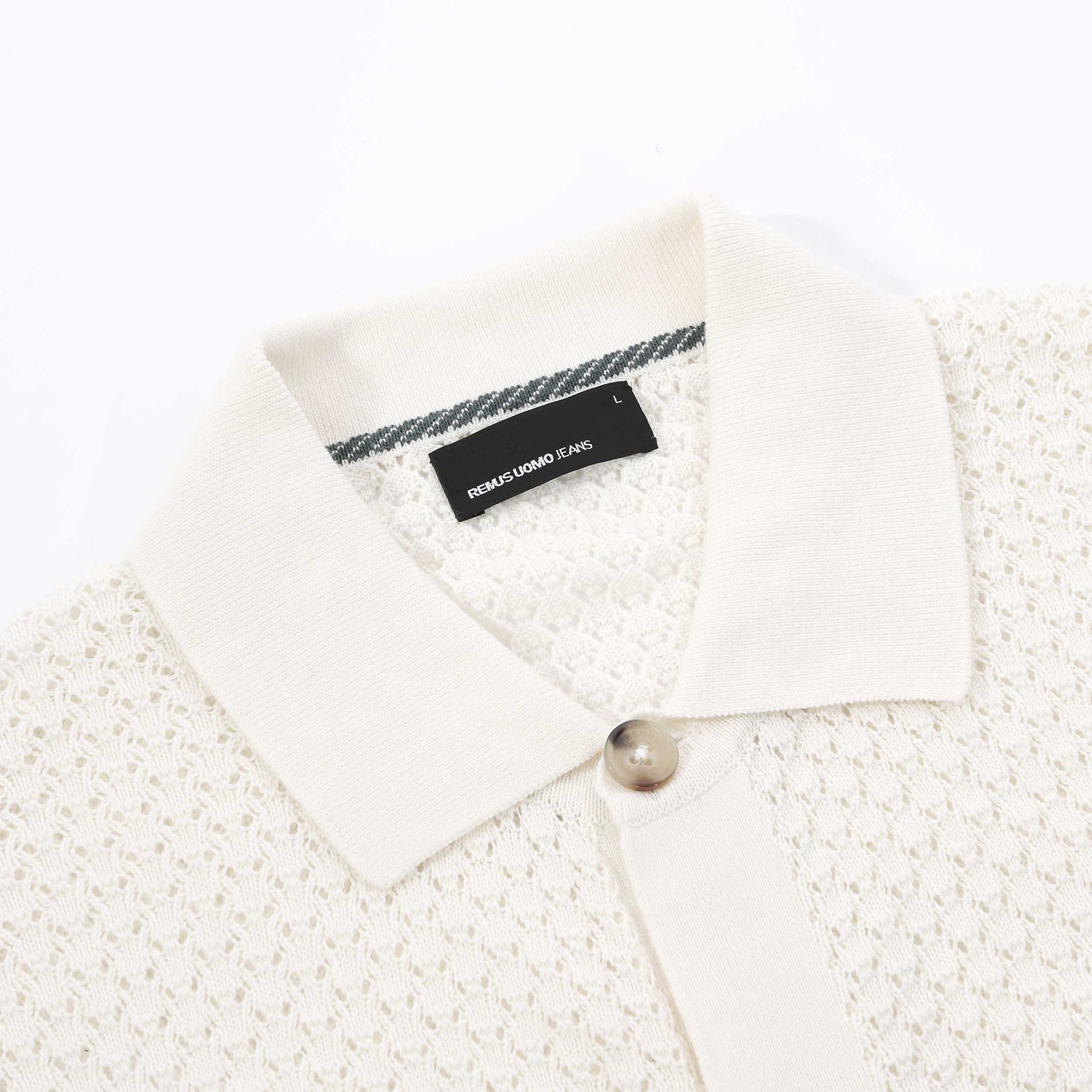 Remus Uomo Knitted Open Weave SS Shirt in Ivory