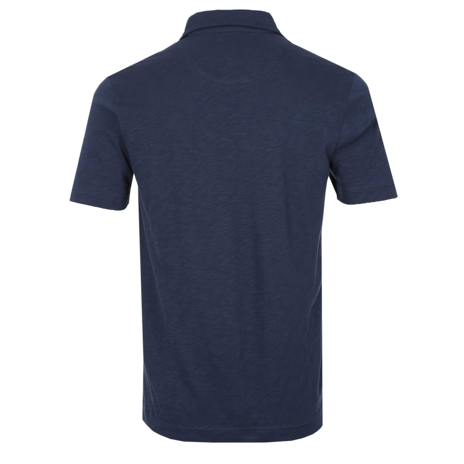 Remus Uomo Skipper Collar Slub Polo Shirt in Navy. Tapered-fit open-collar polo, crafted from soft single jersey slub yarn. Made from 100% cotton, this lightweight and breathable polo is the perfect choice for effortless spring and summer wear.