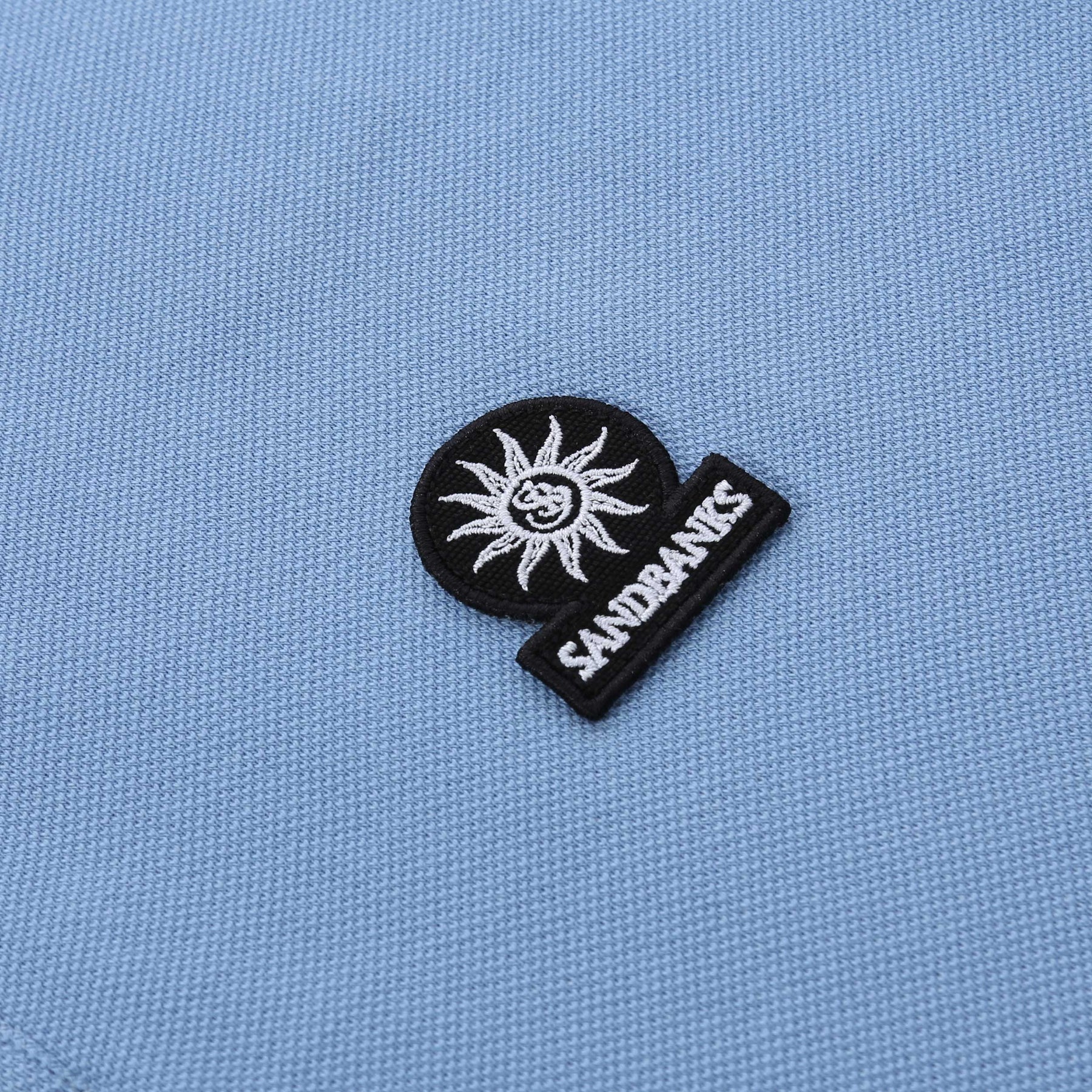 The polo showcases signature Sandbanks branding, including an embroidered badge logo on the chest, distinctive tri-colour tipping on the ribbed collar and cuffs, and a matching tri-colour back neck binding. Finished with Sandbanks laser-engraved pearlescent buttons, side vent detailing, and premium stitching, this shirt blends sustainability with modern British luxury.