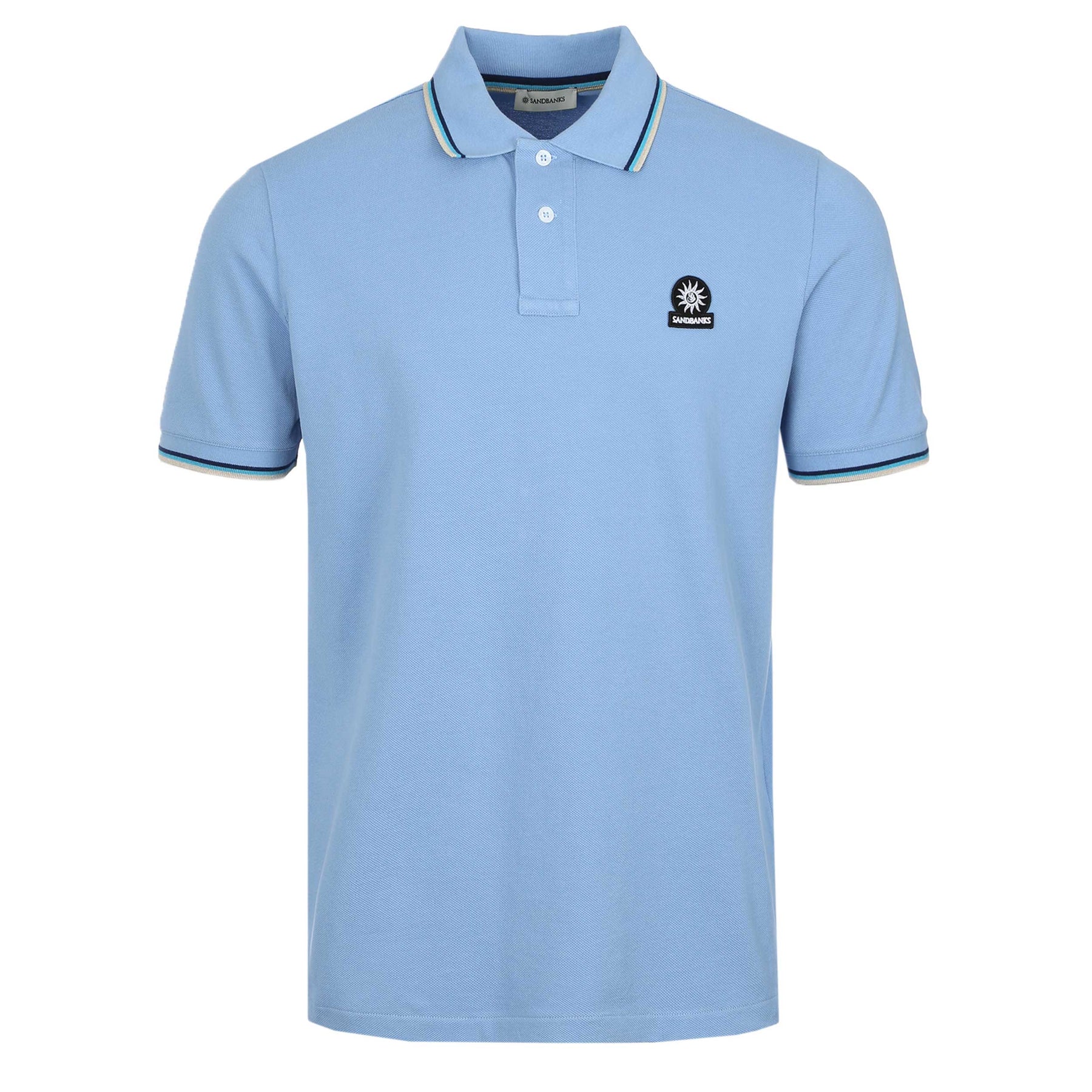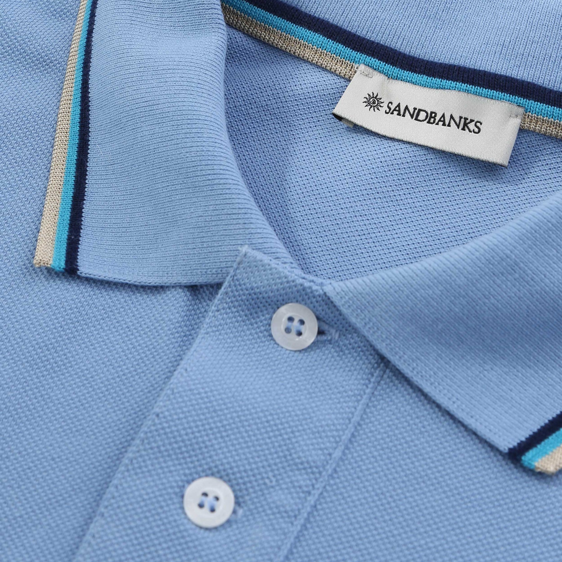 Sandbanks Badge Logo Tipped Polo Shirt in Dusty Blue
